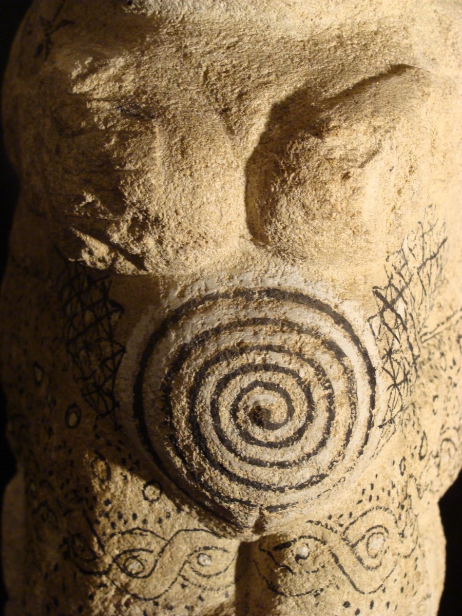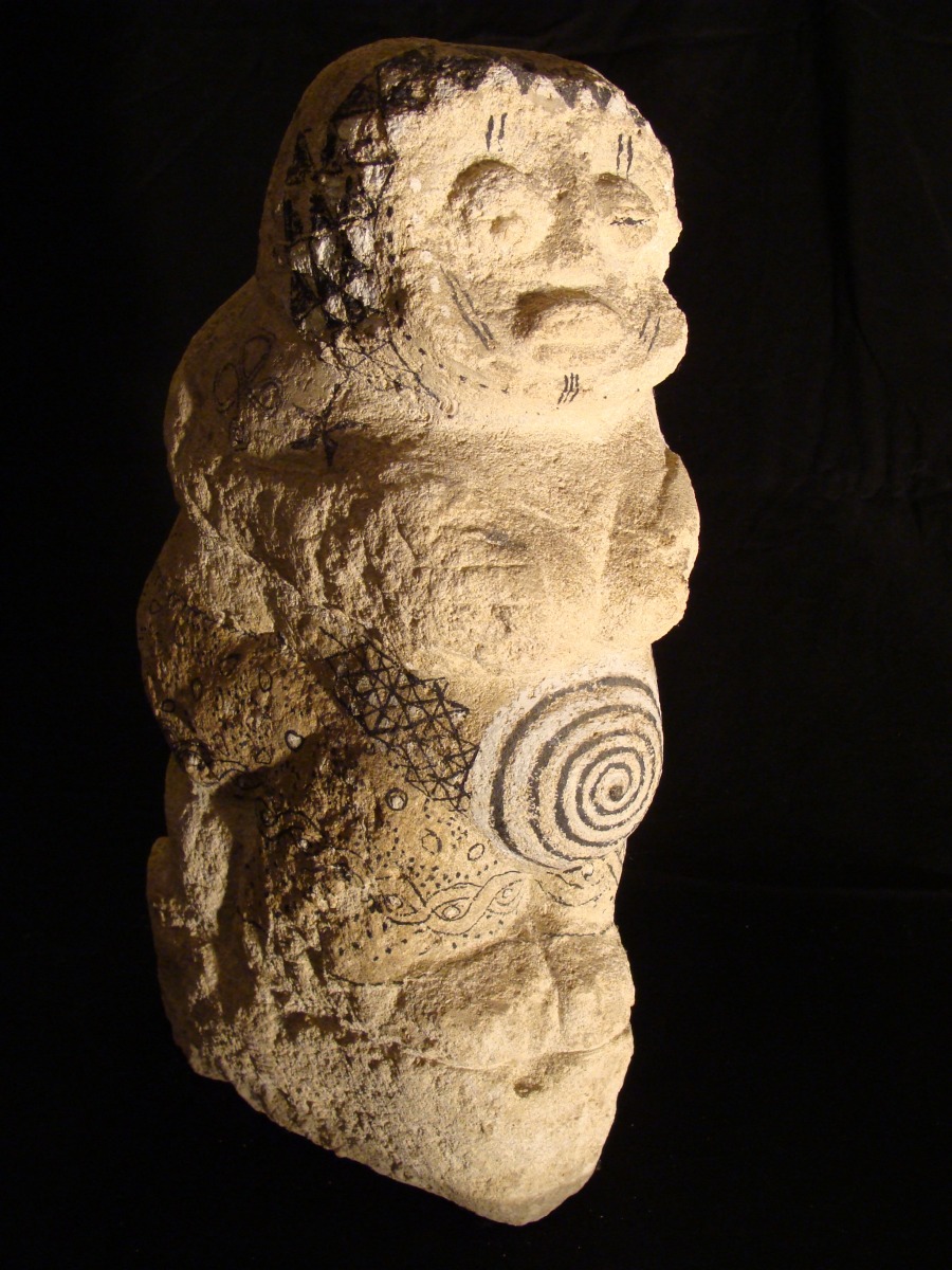 Taille directe sur pierre calcaire à grains moyens à gros, oolithique coquillier, polychrome.