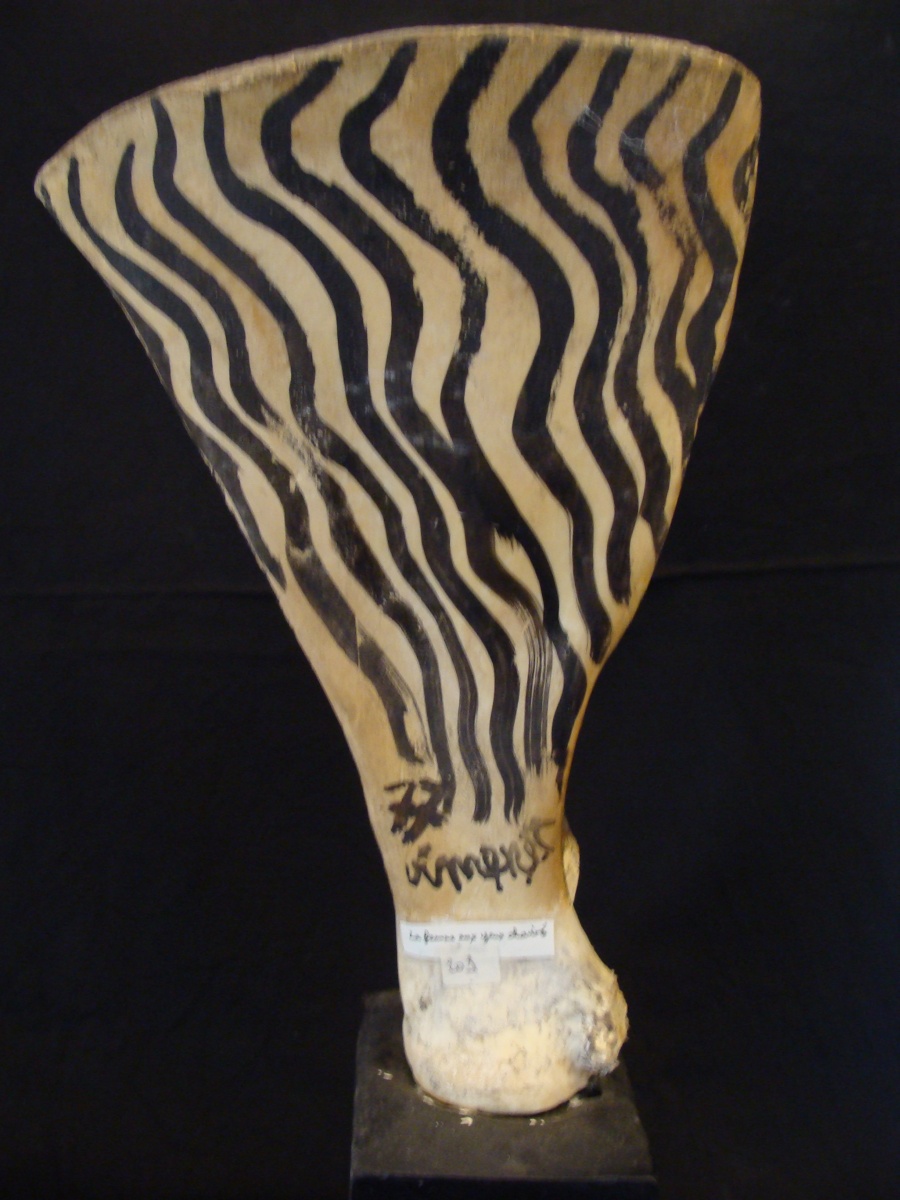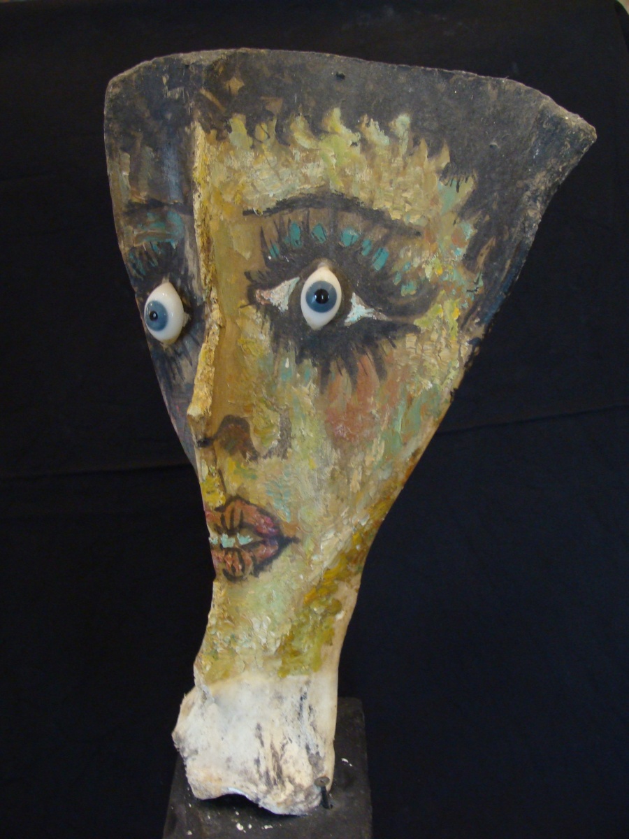 " La Femme aux yeux chavirés ".Os peint, polychrome, face...