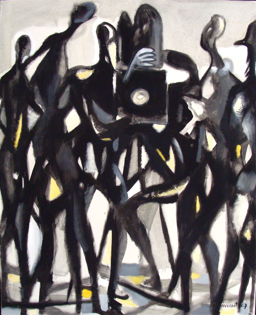 " Caméra 5 ".Huile sur toile signée et datée en...