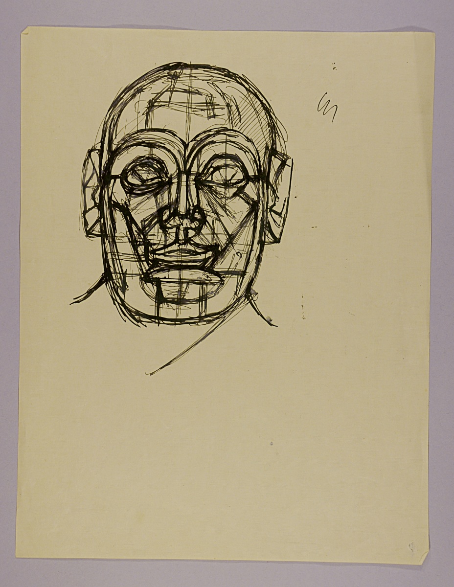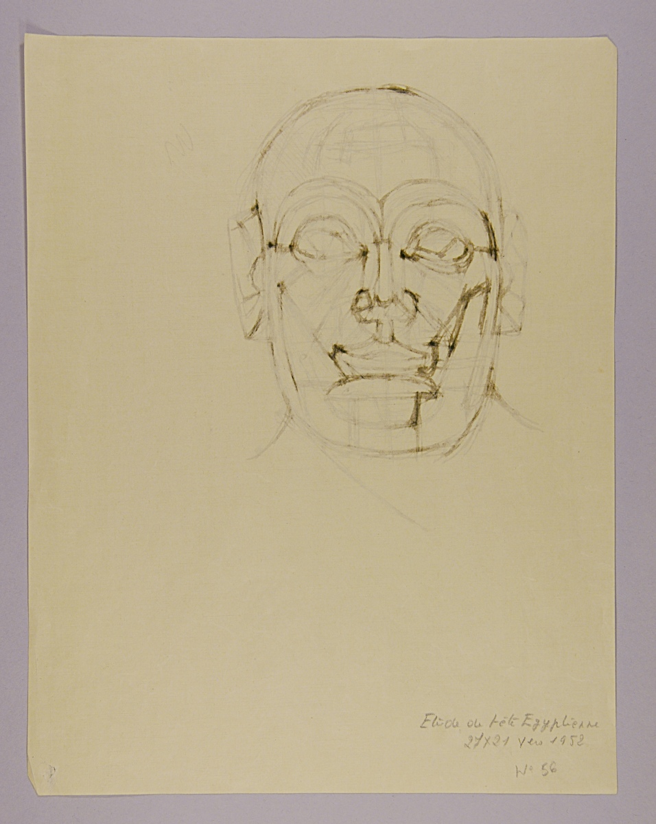 Mentions manuscrites au crayon au dos en bas: "Etude ou tête Egyptienne / 27 x 21 vers 1952 / N°56"