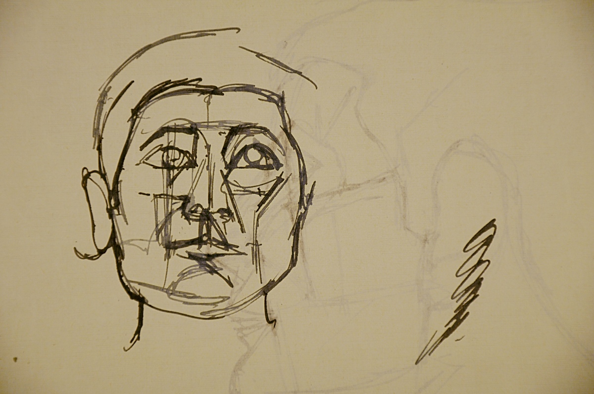 Dessin double face à la plume et à l'encre noire sur papier à lettres.