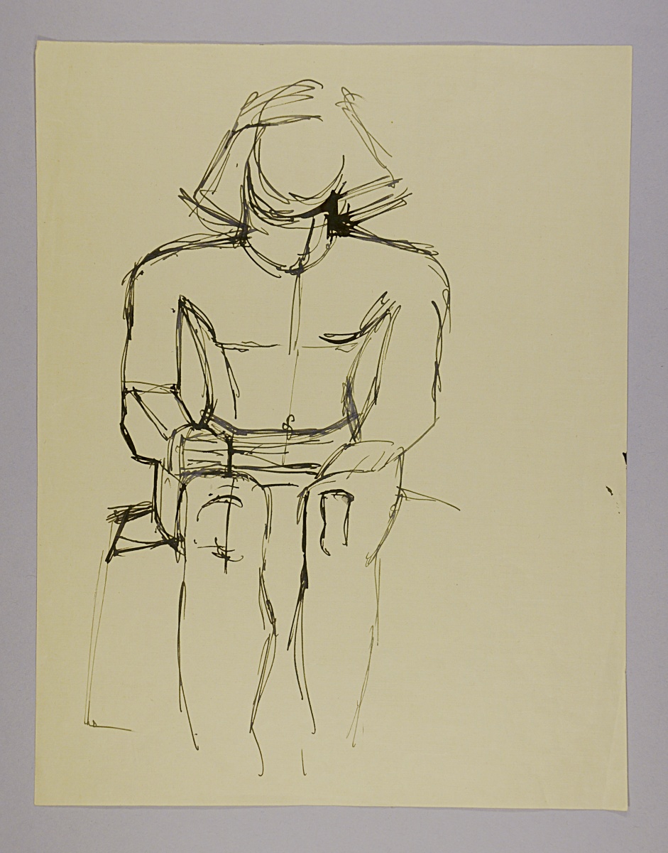 Mentions manuscrites au crayon au dos en bas: "Personnage assis / 27 x 21 vers 1952 / N° 22".