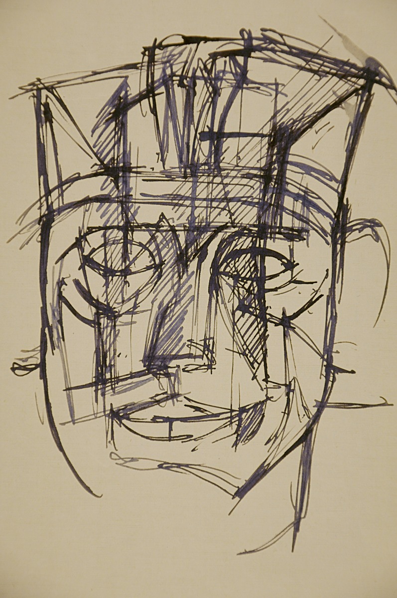 Dessin à la plume et à l'encre noire sur papier à lettres.