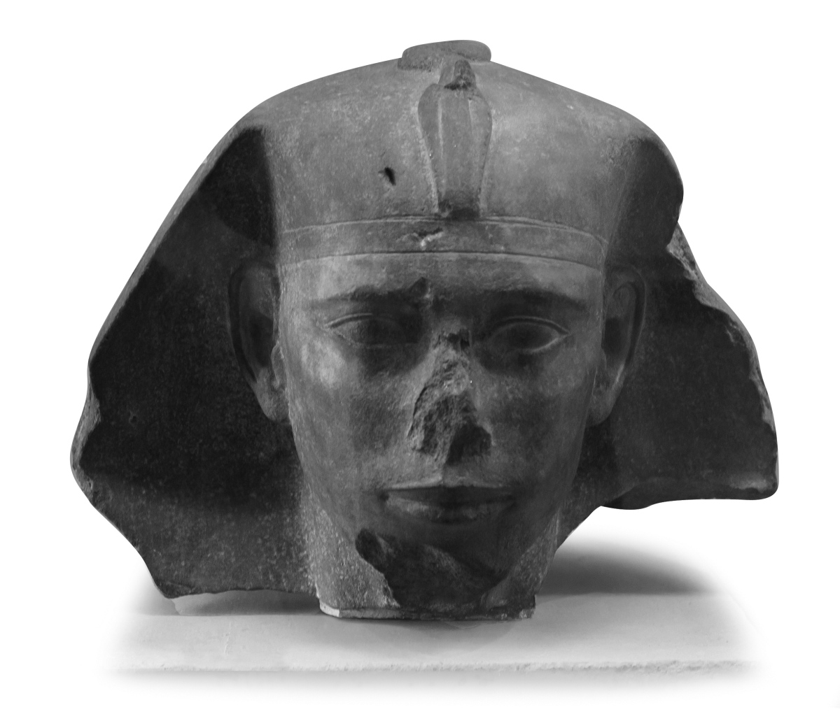 Tête d'un sphinx du roi Didoufri conservée au musée du Louvre (Didoufri, quartz, vers 2.500 avant J.-C., Haut. 26,5 cm).