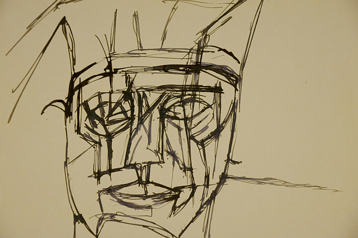 Dessin à la plume et à l'encre noire sur papier à lettres.