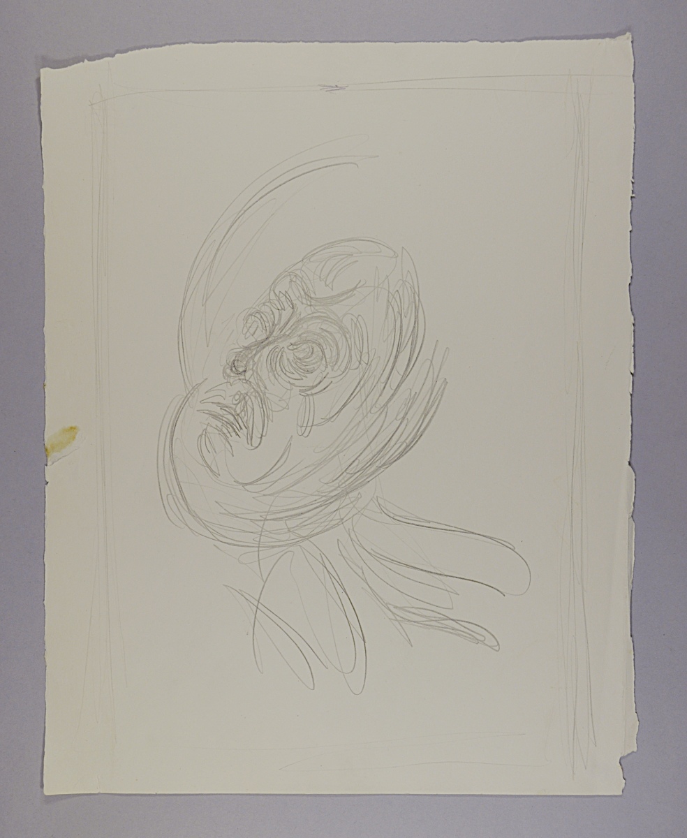 Peut-être copié d'après un livre présent dans la bibliothèque d'Alberto Giacometti: CECCHI Emilio (dir.), Cimabue, Rome, Éditions Tumminelli, 1946, planche 27 (détail de " La Crucifixion ", Assise, Basilique supérieure).