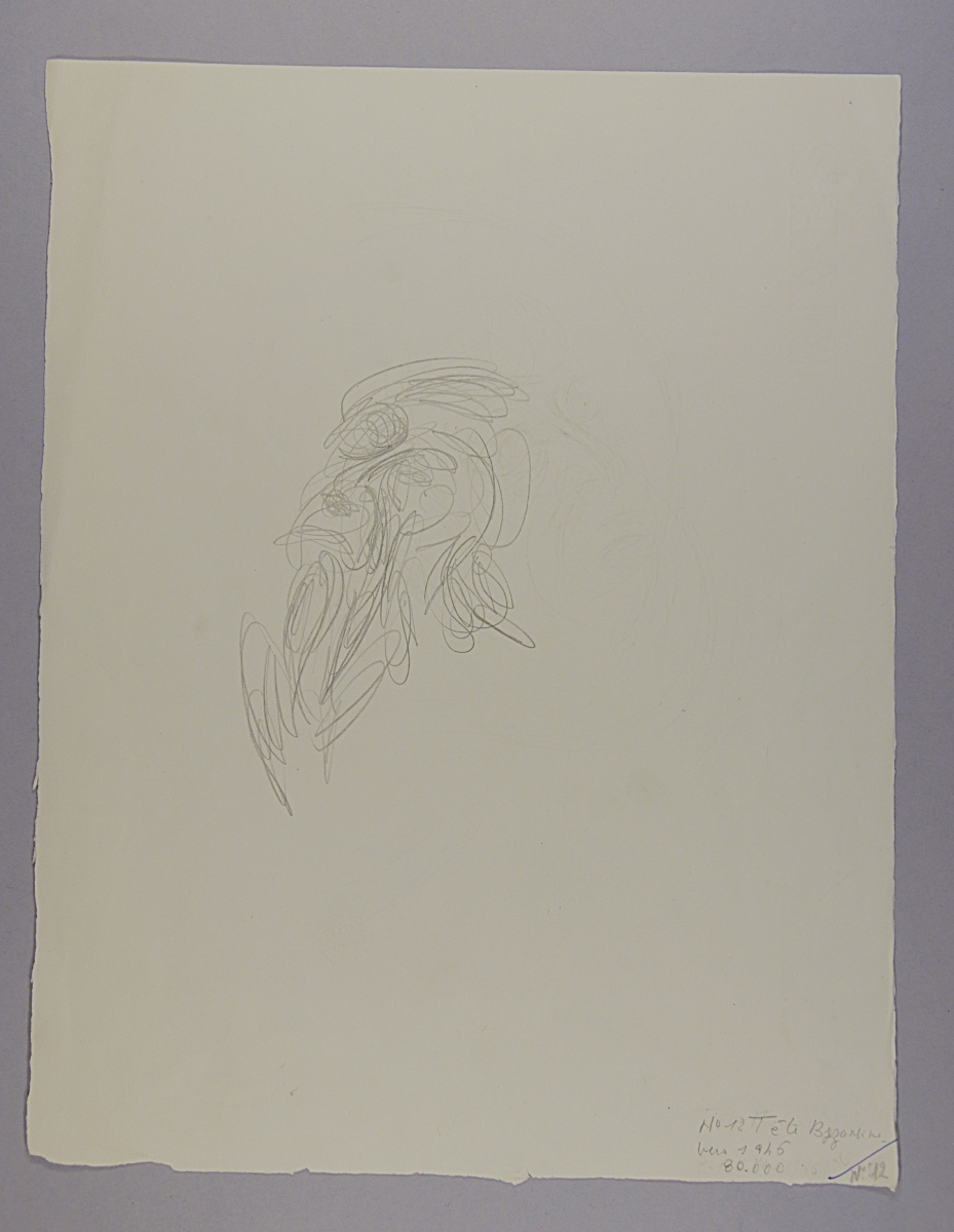 Mentions manuscrites au crayon en bas: "N°12 / tête Byzantine / vers 1946 / 80.000 / N°12", un trait à l'encre bleue.