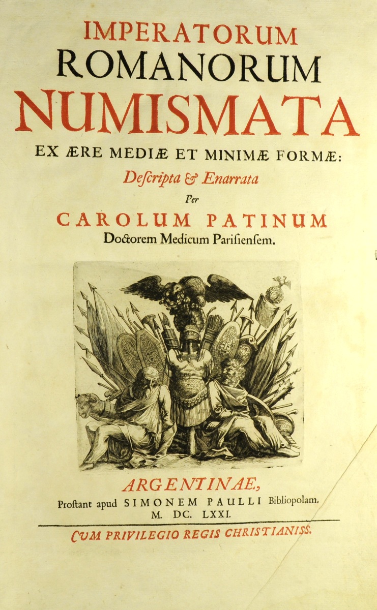 PATINUM Carolum (PATIN, Charles). Imperatorum Romanorum Numismata Ex aere mediae et minimae Formae: Descripta et Enarrata.