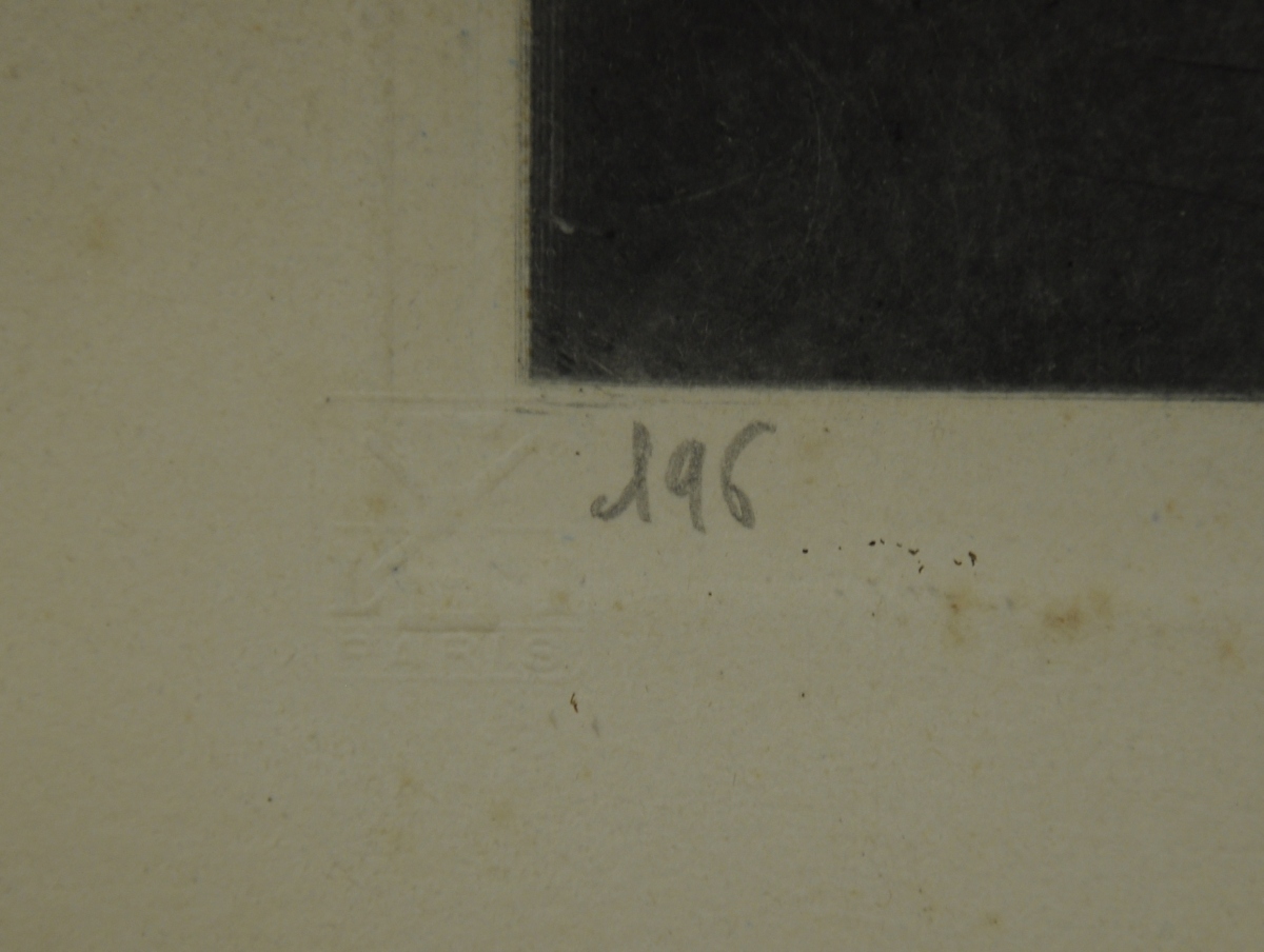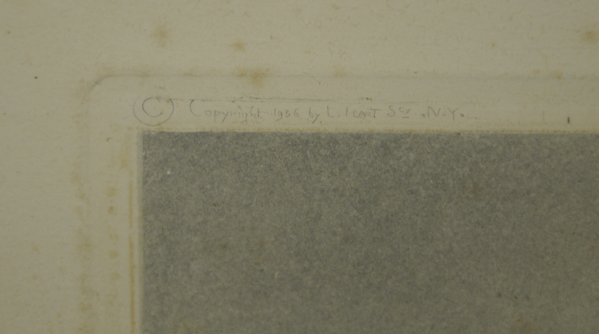 Eau-forte en couleurs, signée au crayon dans la marge en bas à droite, numérotée 196, avec cachet à sec et mention "Copyright 1936 by L. Icart Sty N.Y."
