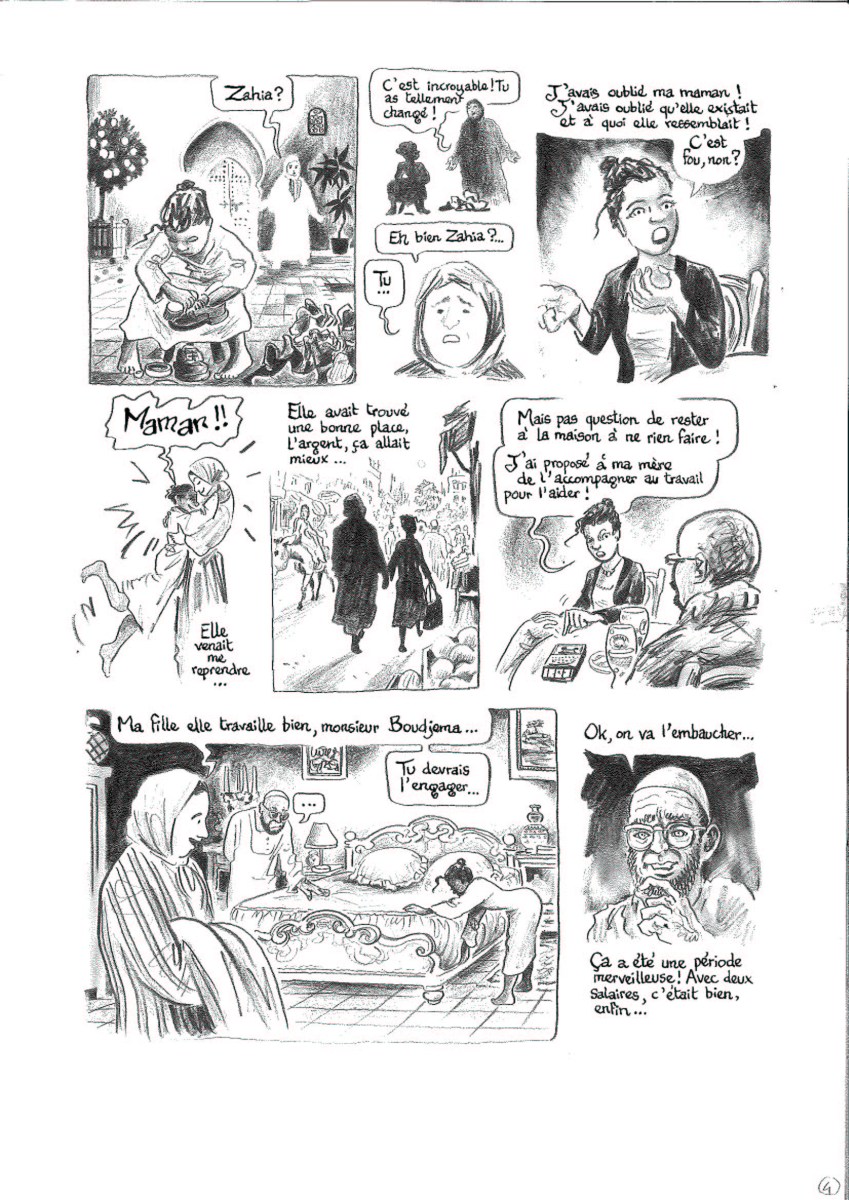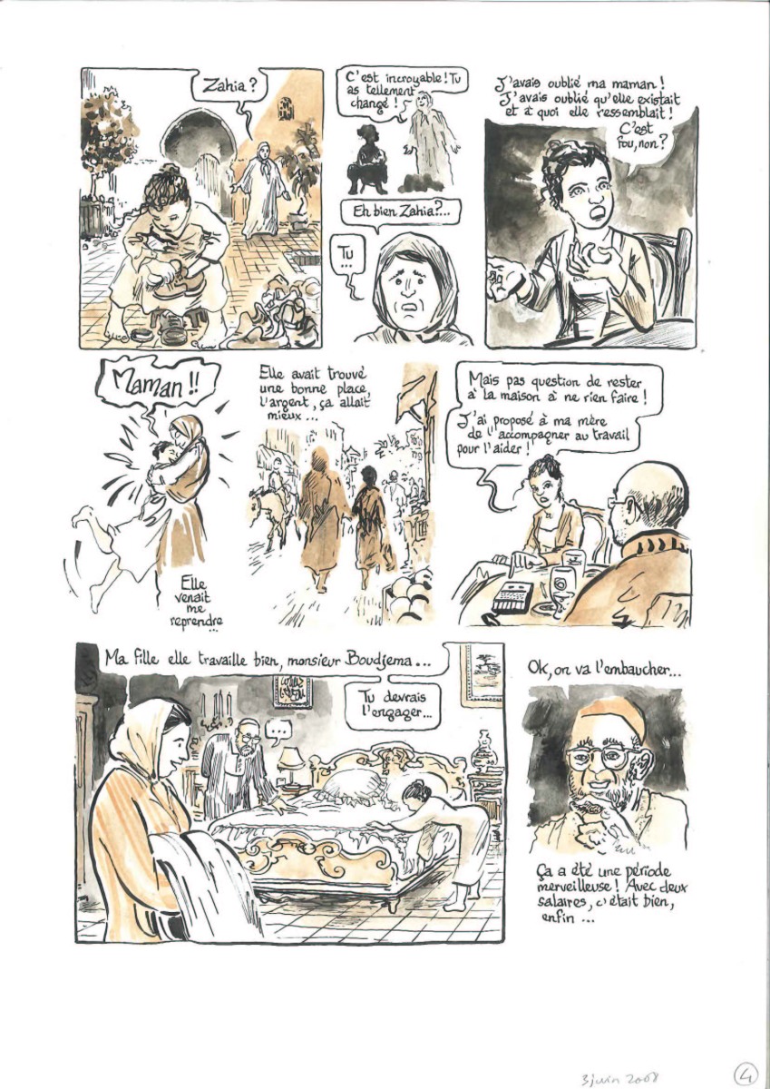 4 planches dont 1 crayonné, une première version et le définitif de la même page.