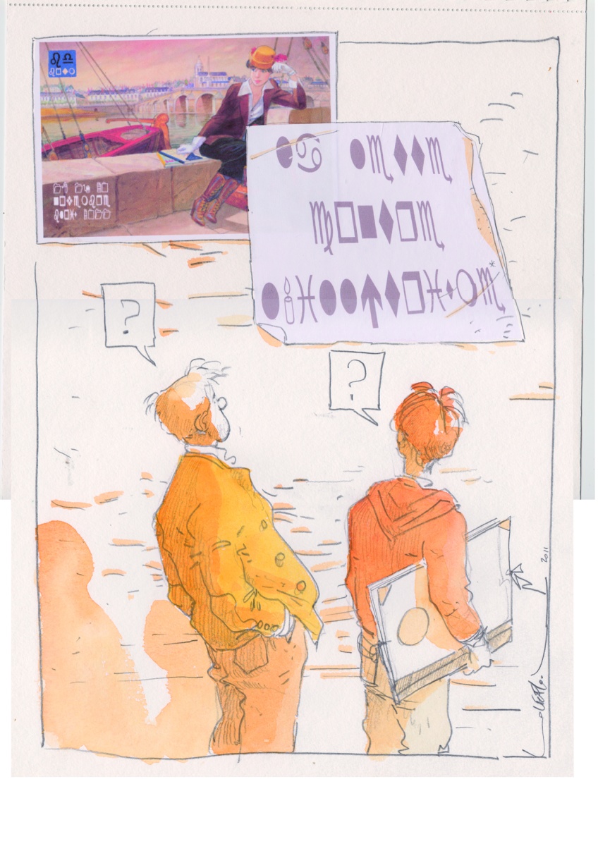 Bruno LE FLOC'H"Lutte contre l'illétrisme"Dessin original, crayon, aquarelle, collages.24x32 cm.AVEC...