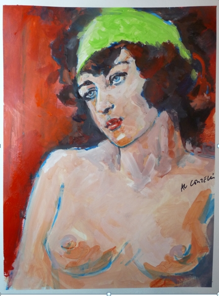 Alexandre COUTELIS"Jeune fille avec bandeau" Acrylique. Exercice d'entrainement, gamme fait...