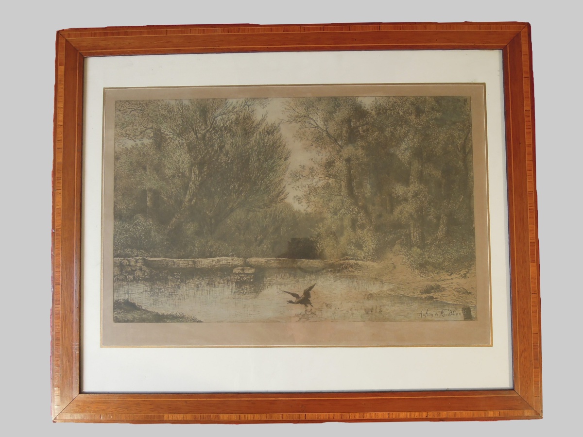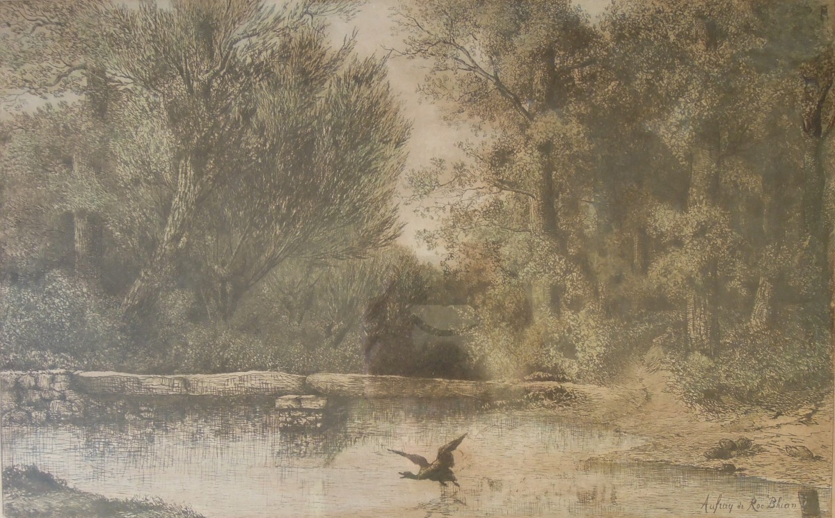 Eau-forte et pointe sèche rehaussée en couleur.
