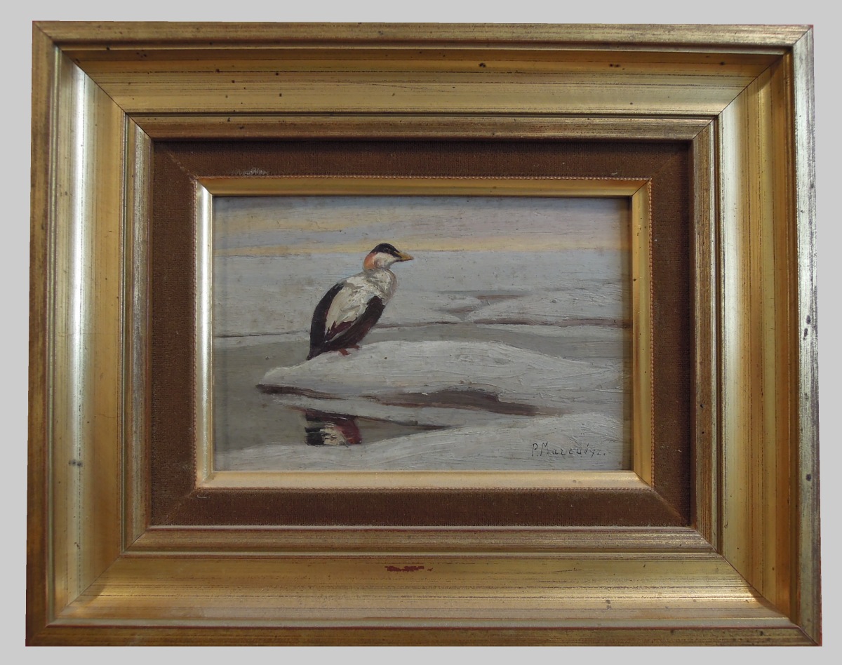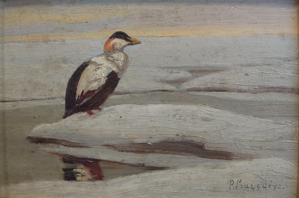"Sur la glace (canard Eider)".