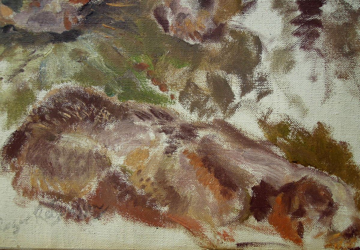 Toile signée en bas à gauche, titrée sur un cartel posé sur le cadre.