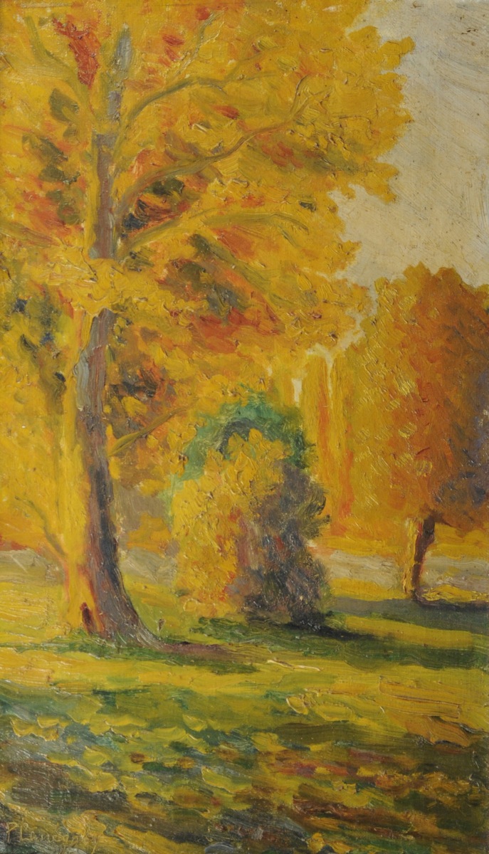 Huile sur toile signée en bas à gauche. Titrée et datée "Automne 1909" au dos.