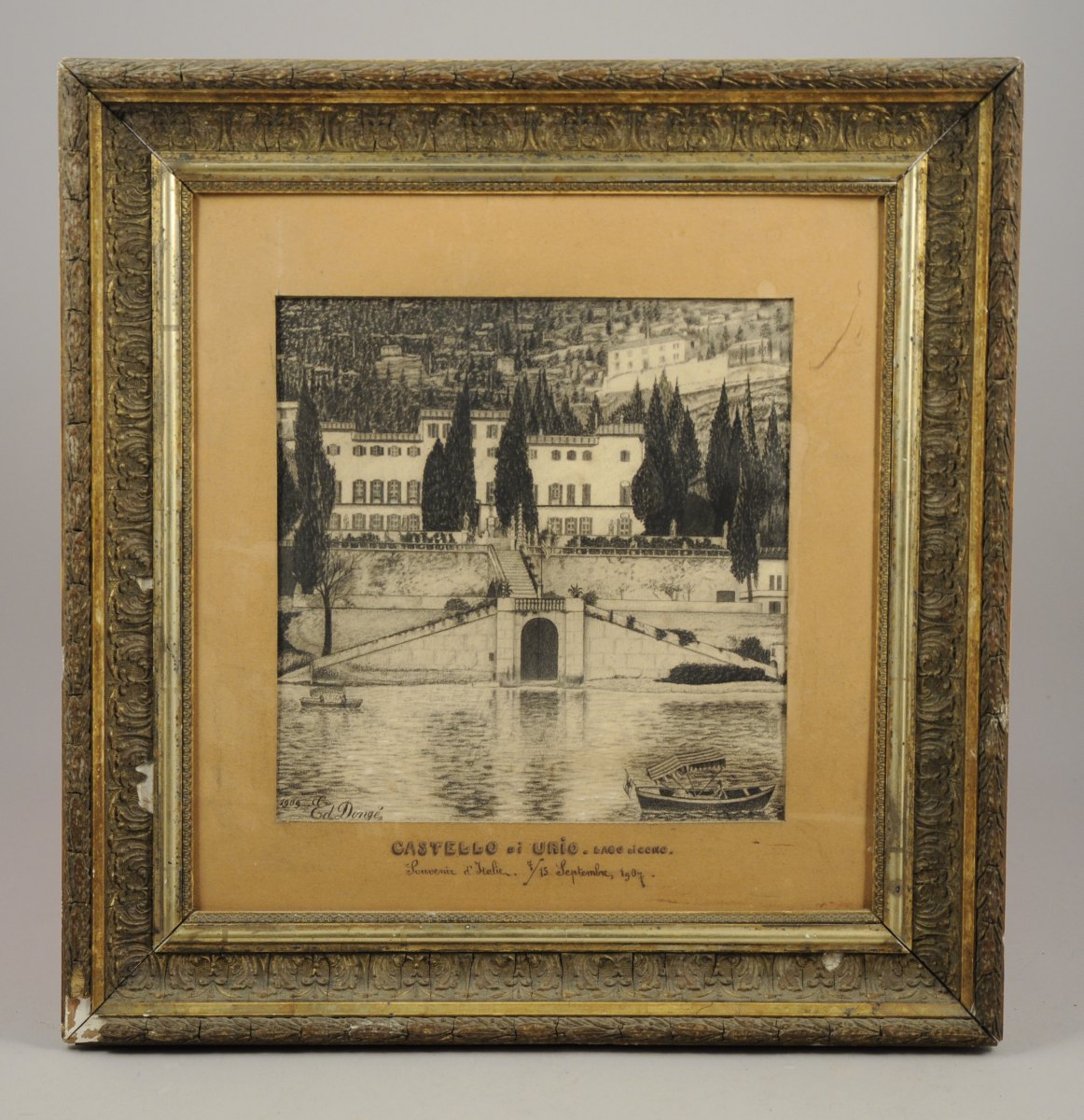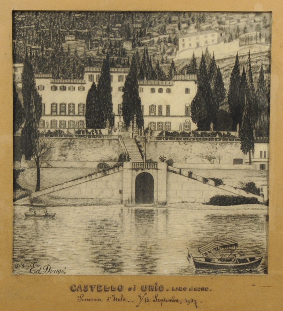 Fusain (?) et réhauts de craie sur papier signé et daté 1909 en bas à gauche. Titré et mention manuscrite "Souvenir d'Italie. 7/15 Septembre 1907" sur le passe-partout.