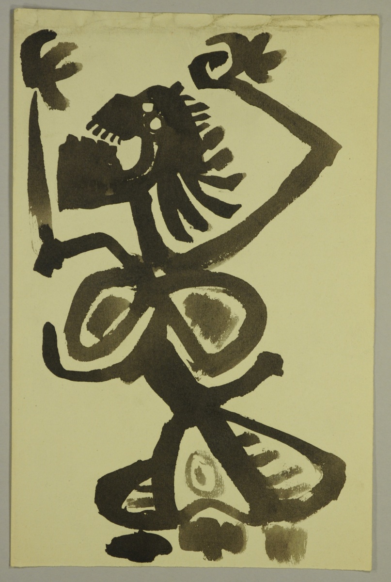 Trois oeuvres sur papier comprenant deux silhouettes aquarellées et une gouache aquarellée travaillée. Au revers de l'une d'entre elles, une étude au pastel.