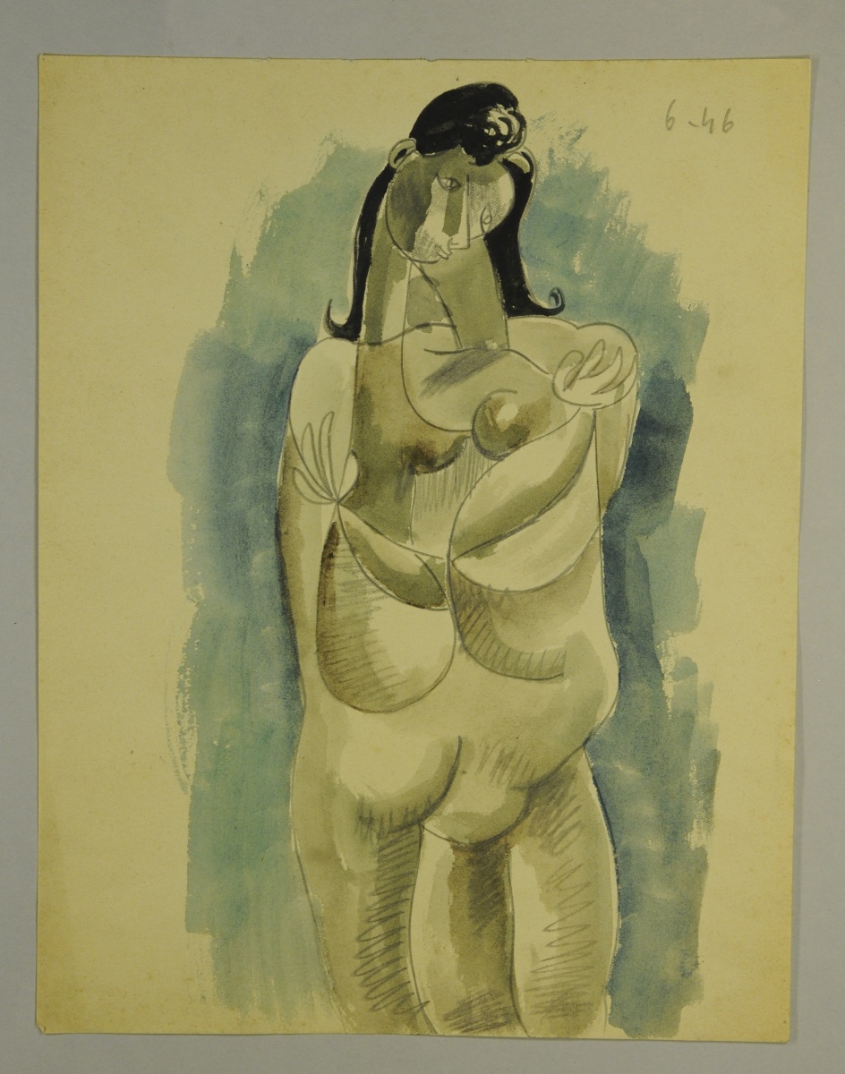 Quatre aquarelles sur papier dont deux rehaussées à la mine de plomb. L'une numérotée "6-46" en haut à droite.