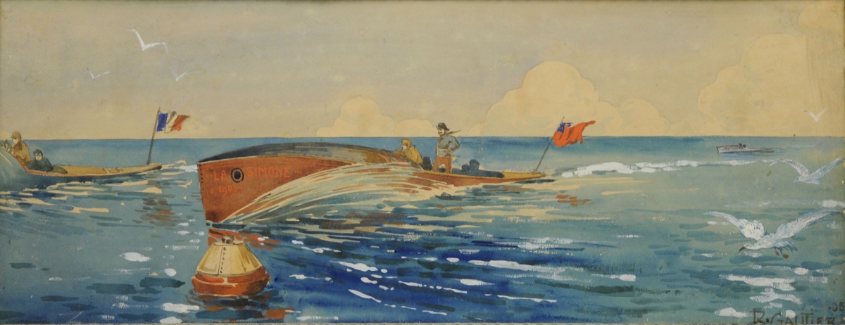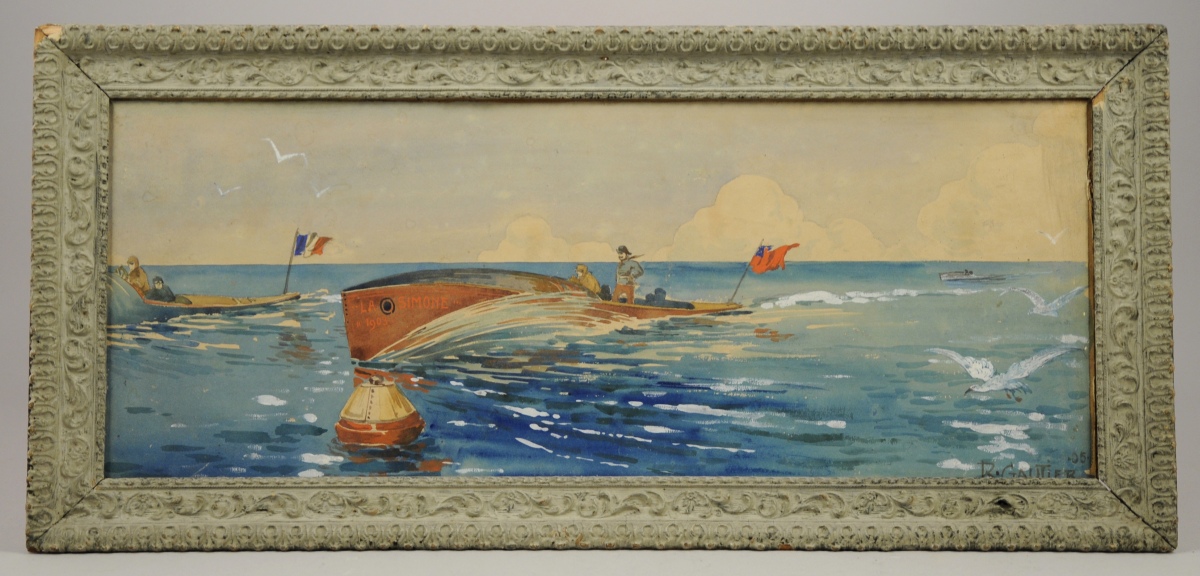 Aquarelle gouachée sur papier marouflé sur panneau signée et datée 05 (?) en bas à droite.