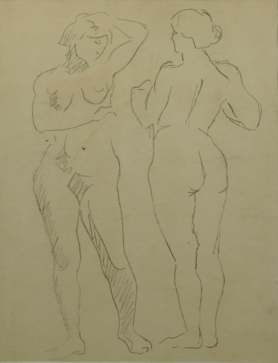 École MODERNE.Etude de nu, de face et de dos.Crayon sur...