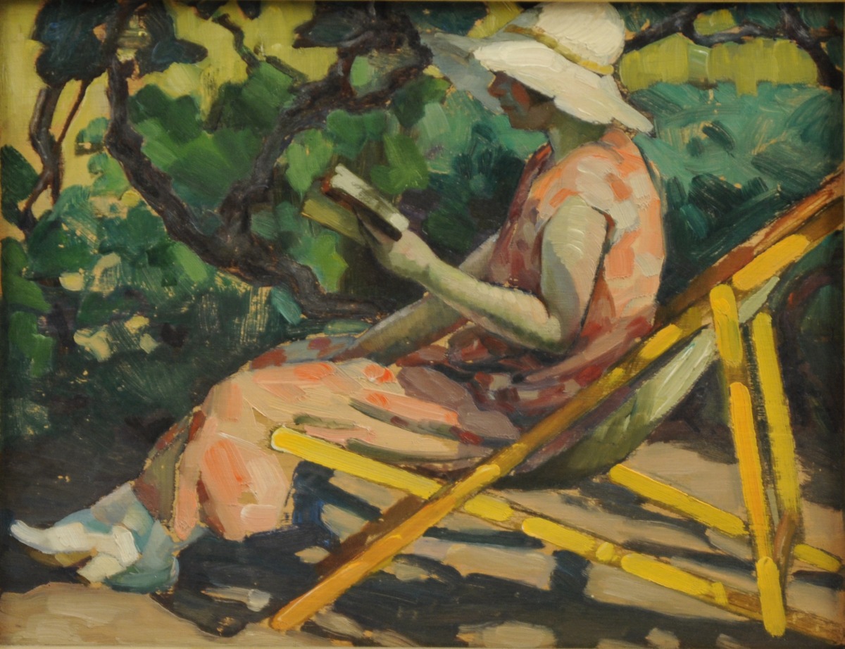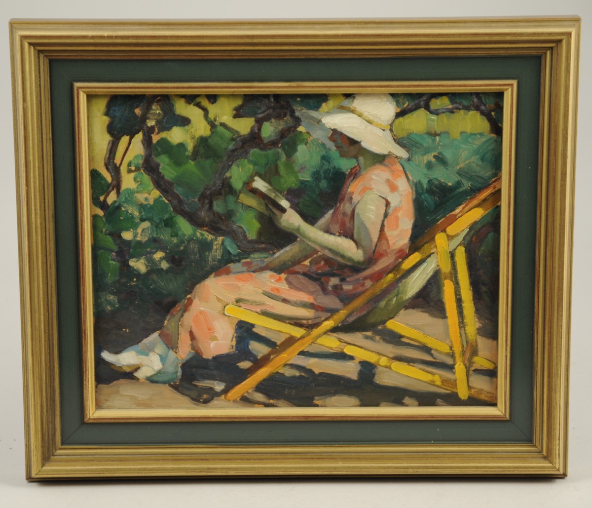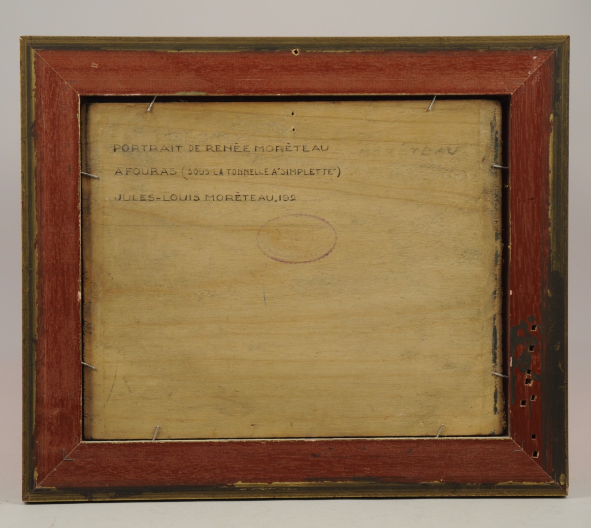 Au dos, mention manuscrite du peintre: "Portrait de Renée Moréteau à Fouras (sous la tonelle à "simplette"). Jules-Louis Moréteau 192"