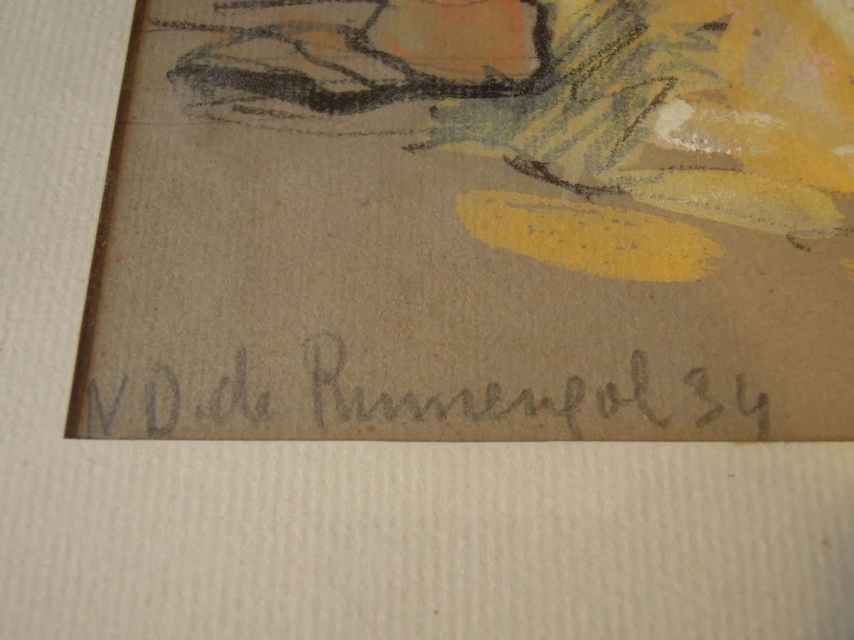 Fusain et gouache signé au crayon en bas à droite, titré en bas à gauche et daté 34.