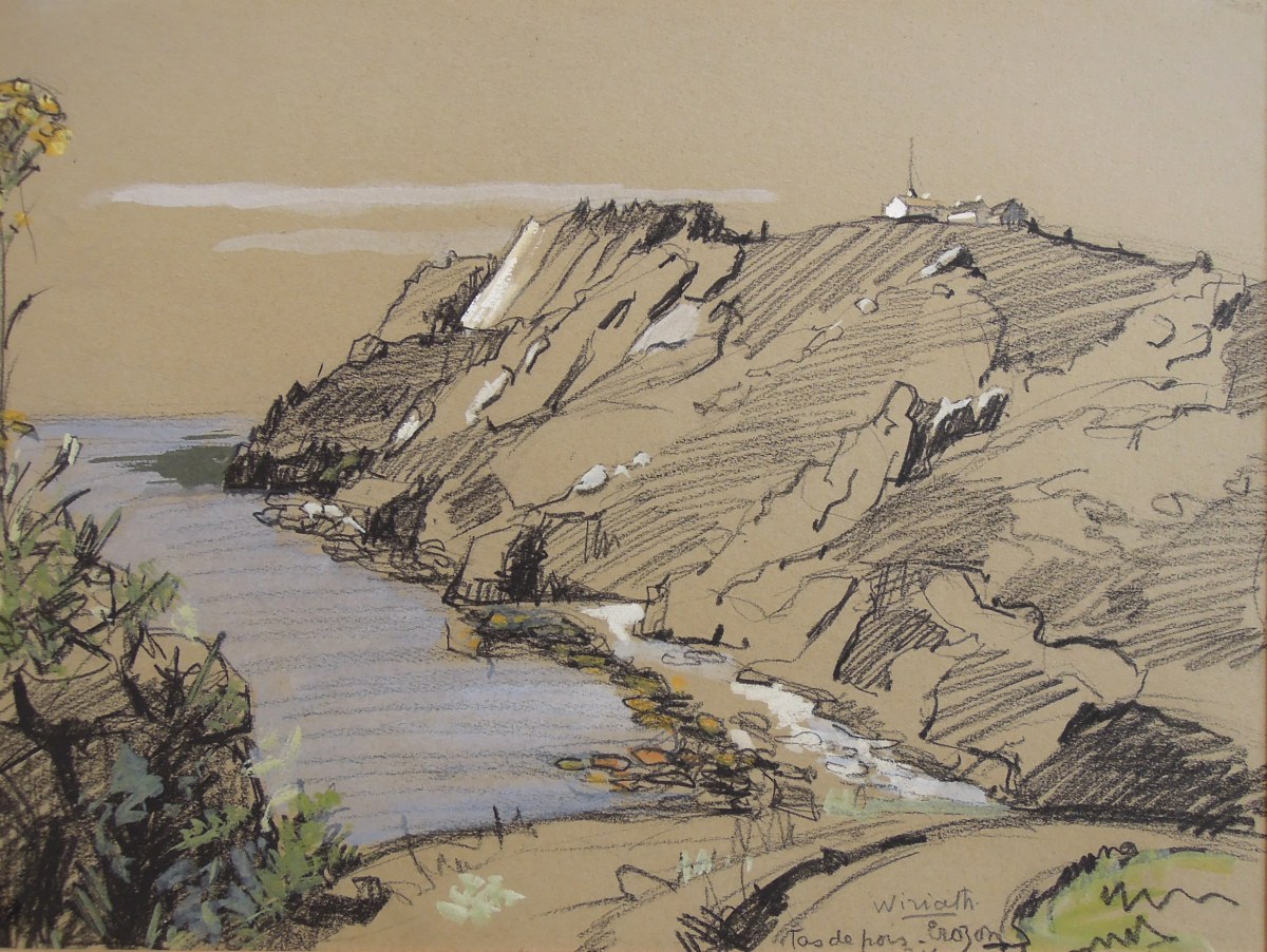 Crayon, gouache et rehaut de blanc. Signé en bas à droite et situé.