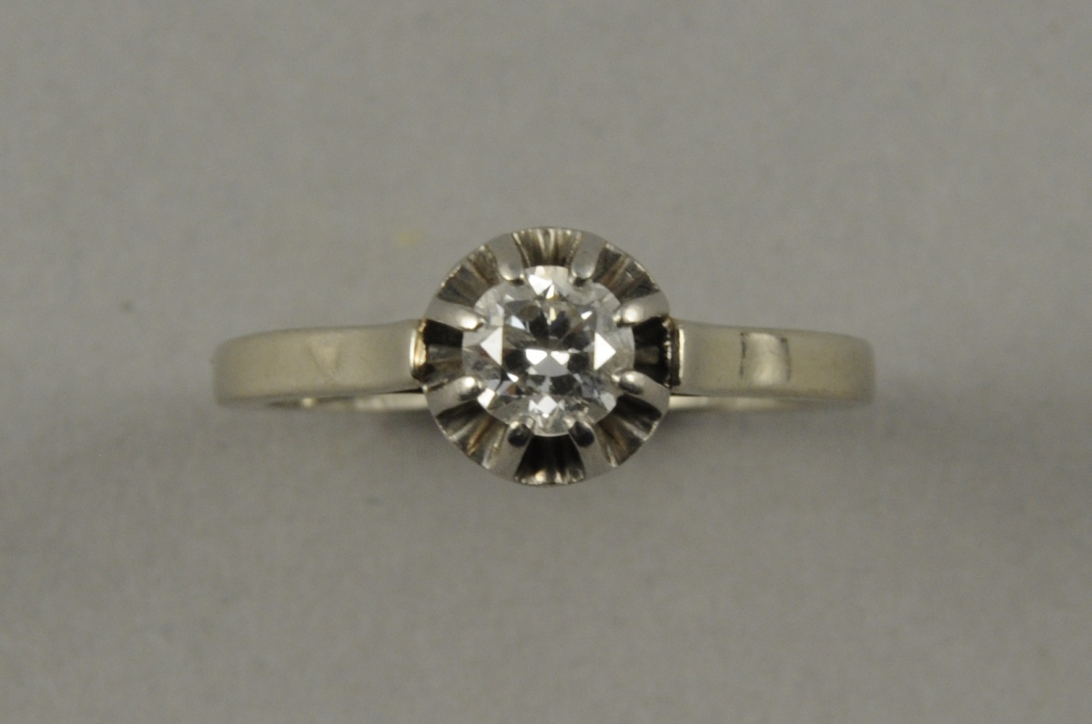 BAGUE en or blanc sertie d'un diamant solitaire de taille moderne d'environ 0,3 carats. Poids brut: 3,1 g.