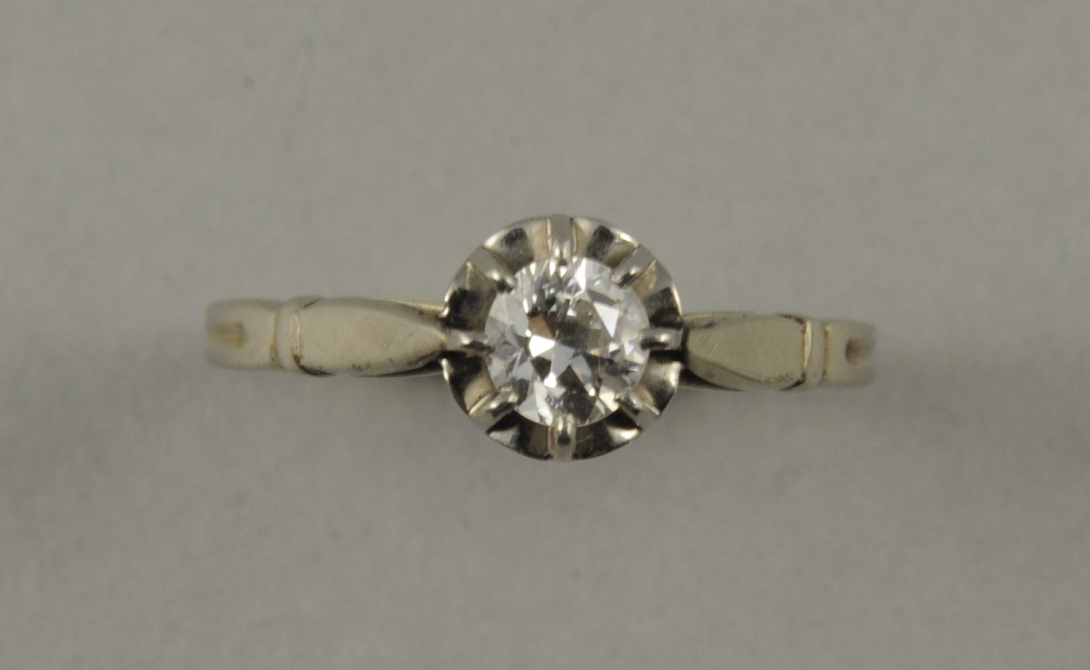 BAGUE en or blanc sertie d'un diamant solitaire de taille moderne d'environ 0,35 carat. Poids brut: 2,5 g.