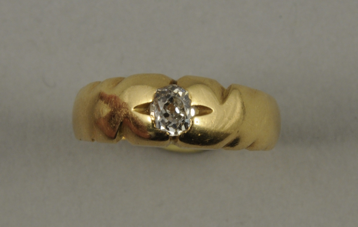 BAGUE en or jaune sertie d'un diamant de taille ovale d'environ 0,40 carat. Poids brut: 7,6 g.