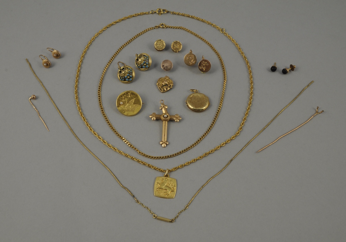 Une CHAINE avec une MÉDAILLE figurant le signe astrologique du lion. Long. 49,5 cm. Poids: 8,4 g.