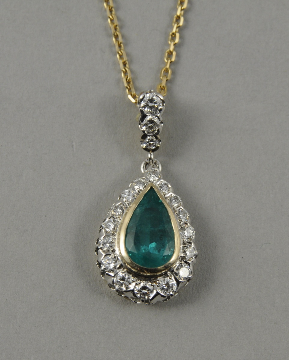 PENDENTIF en forme de poire centré d'une émeraude de Colombie...
