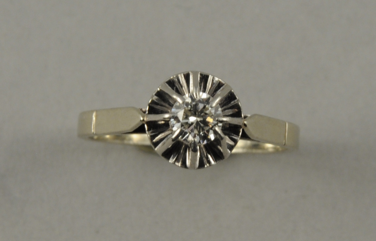 BAGUE en or blanc sertie d'un diamant solitaire d'environ 0,20 carat. Poids brut: 2,9 g.