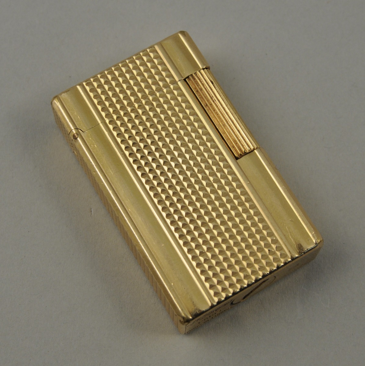 BRIQUET en métal doré à décor de pointes de diamant. Siglé "Antar". S.T. DUPONT. Long. 5,9, Larg. 3,5 cm.