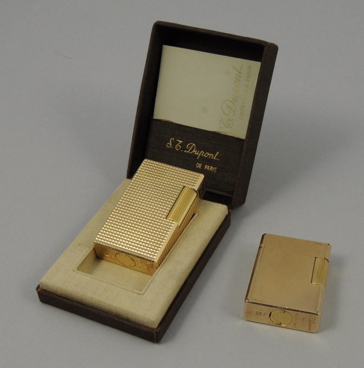DEUX BRIQUETS en plaqué or. Le premier à décor de...