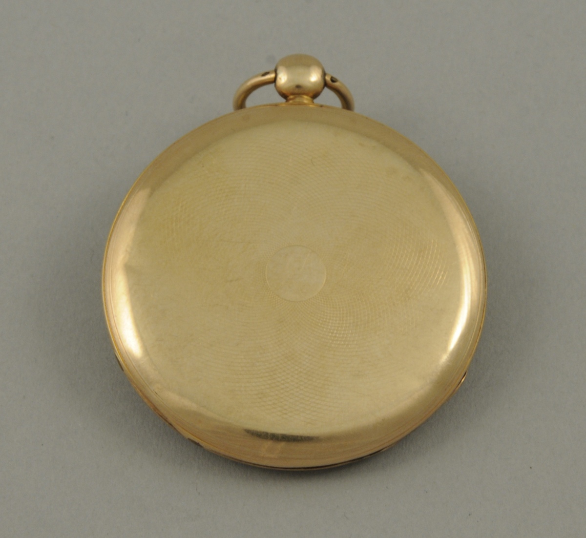 MONTRE d' HOMME à clef. Boîtier en or à décor guilloché. Le cadran, à décor argenté amati, est décentré. Aiguilles or.