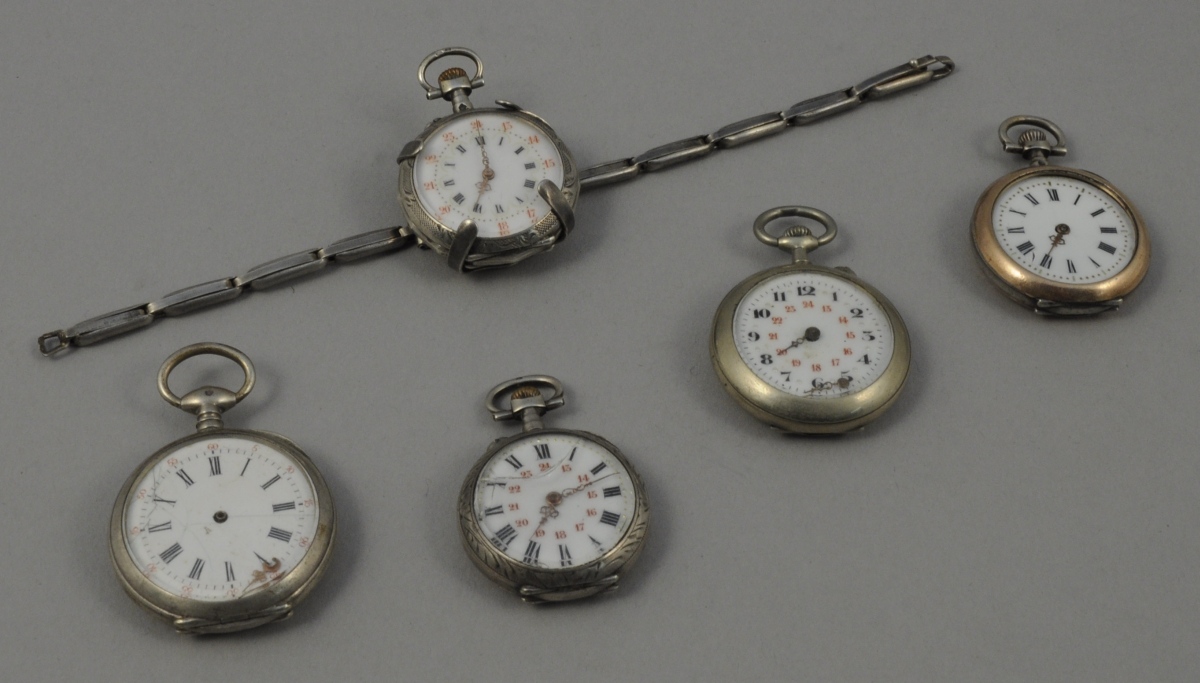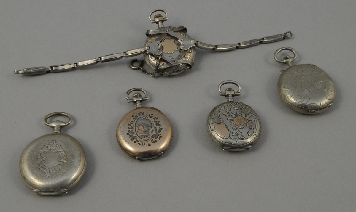 LOT de cinq MONTRES de GOUSSET, trois en argent et deux en métal argenté, à remontoir au pendant, en l'état.