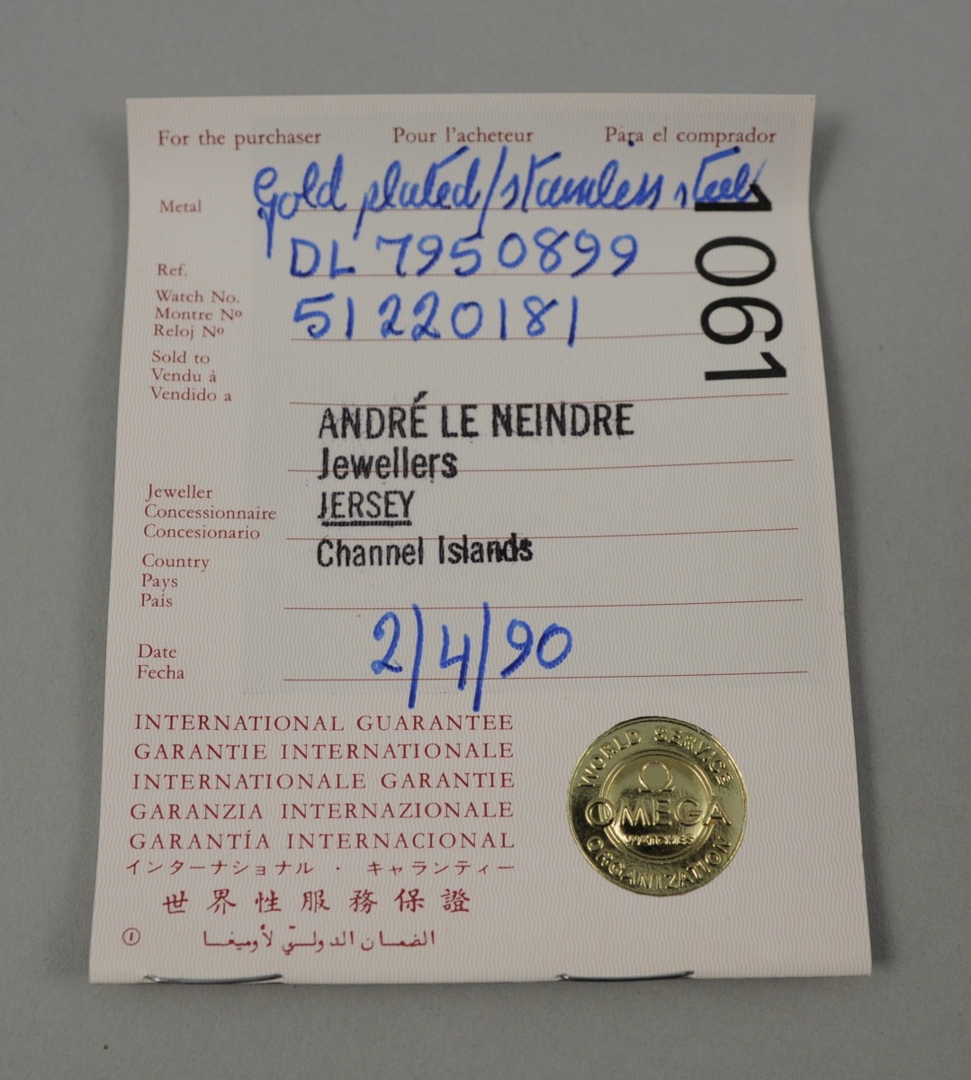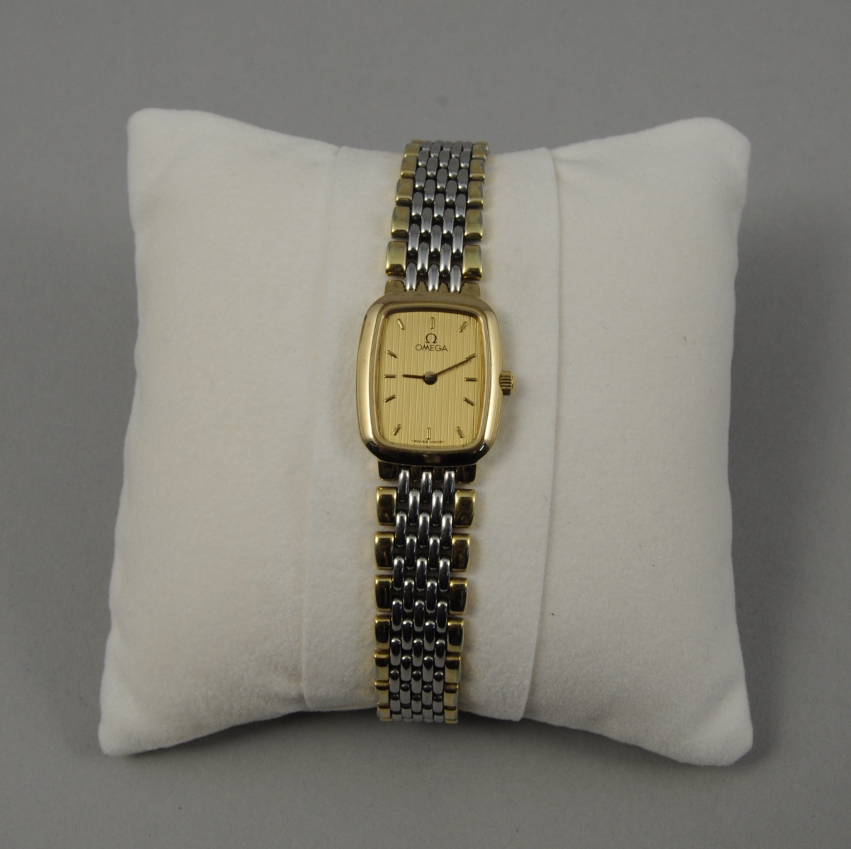MONTRE bracelet de dame OMEGA "DEVILLE" en acier plaqué or. Bracelet à mailles tank.numérotée 6151/441. Dans son coffret avec la garantie de 1990.