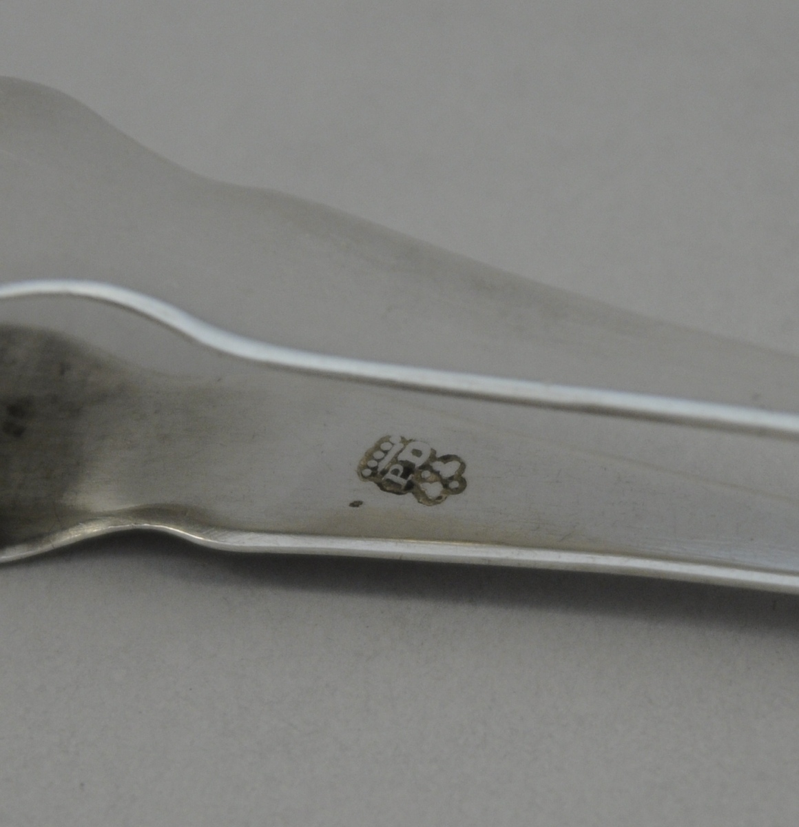 PINCE À SUCRE en argent. Les cuillerons en forme de coquille stylisée. Une toupie à l'amortissement. Poinçon de Maître "PD". Bordeaux, vers 1740. Long. 17,4 cm. Poids: 60 g.