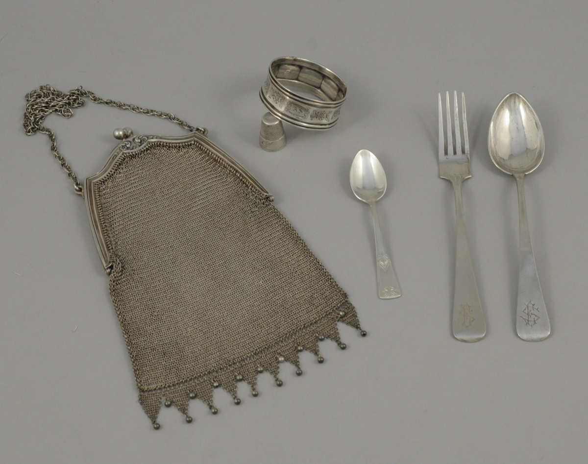 JOINT: -COUVERT en argent monogramé LS, modèle uniplat, poinçons étrangers.