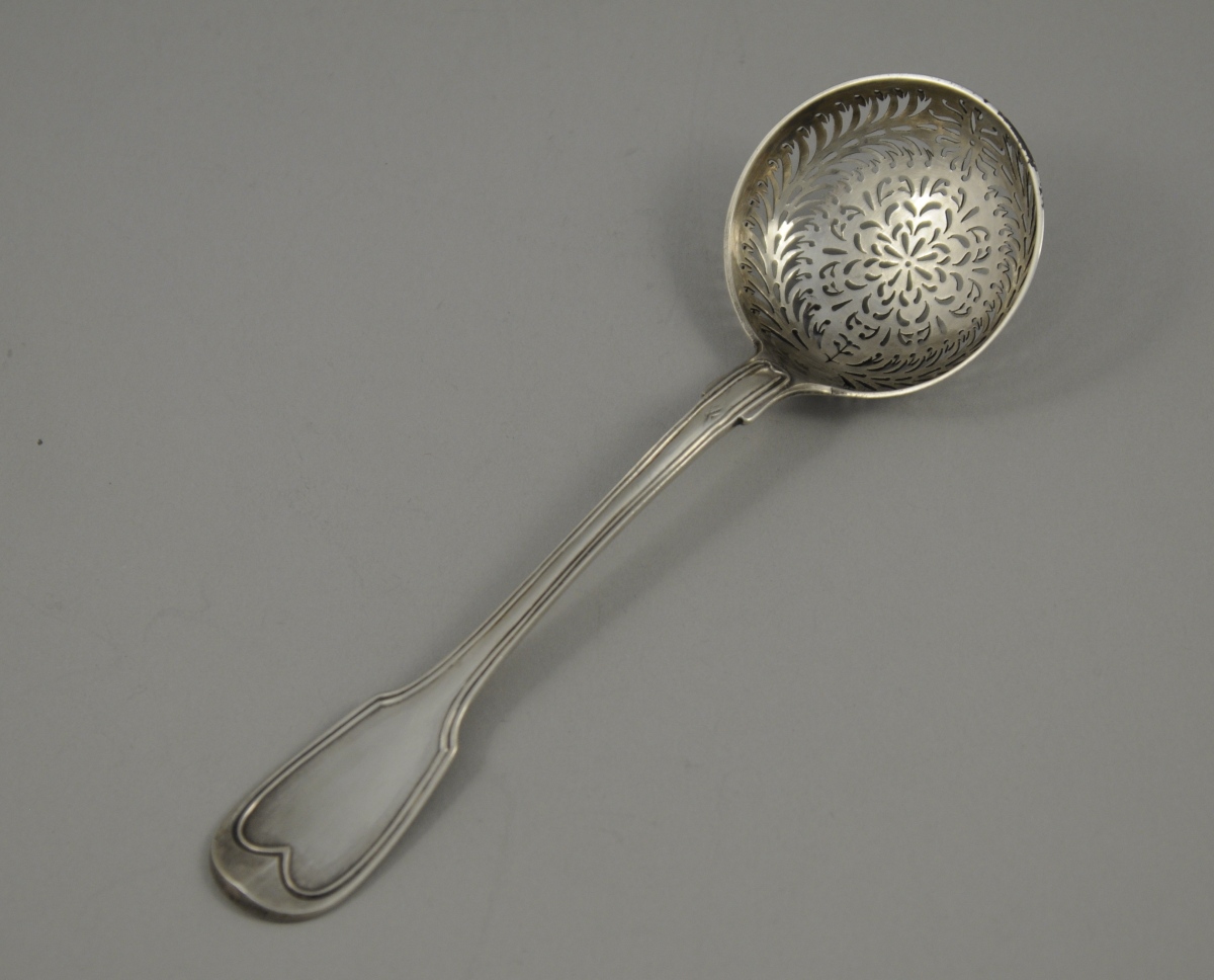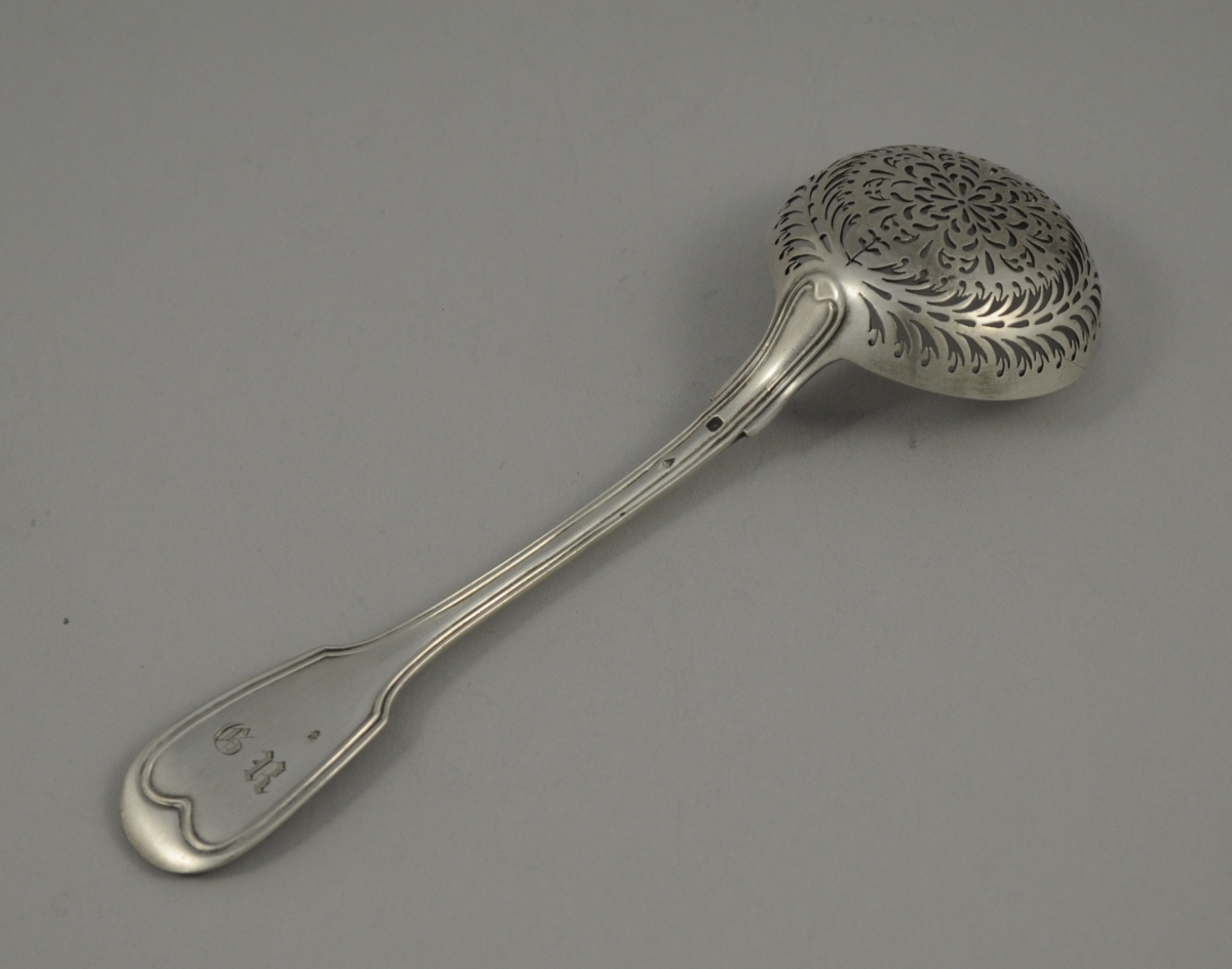 SAUPOUDREUSE en argent, modèle filet contour monogrammée "GR". Poinçon Minerve. Poids. 80 g.