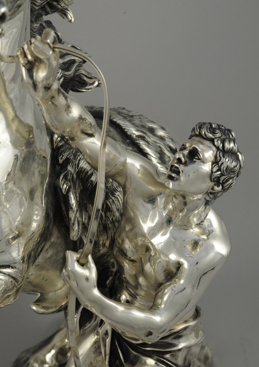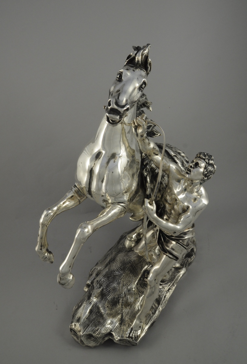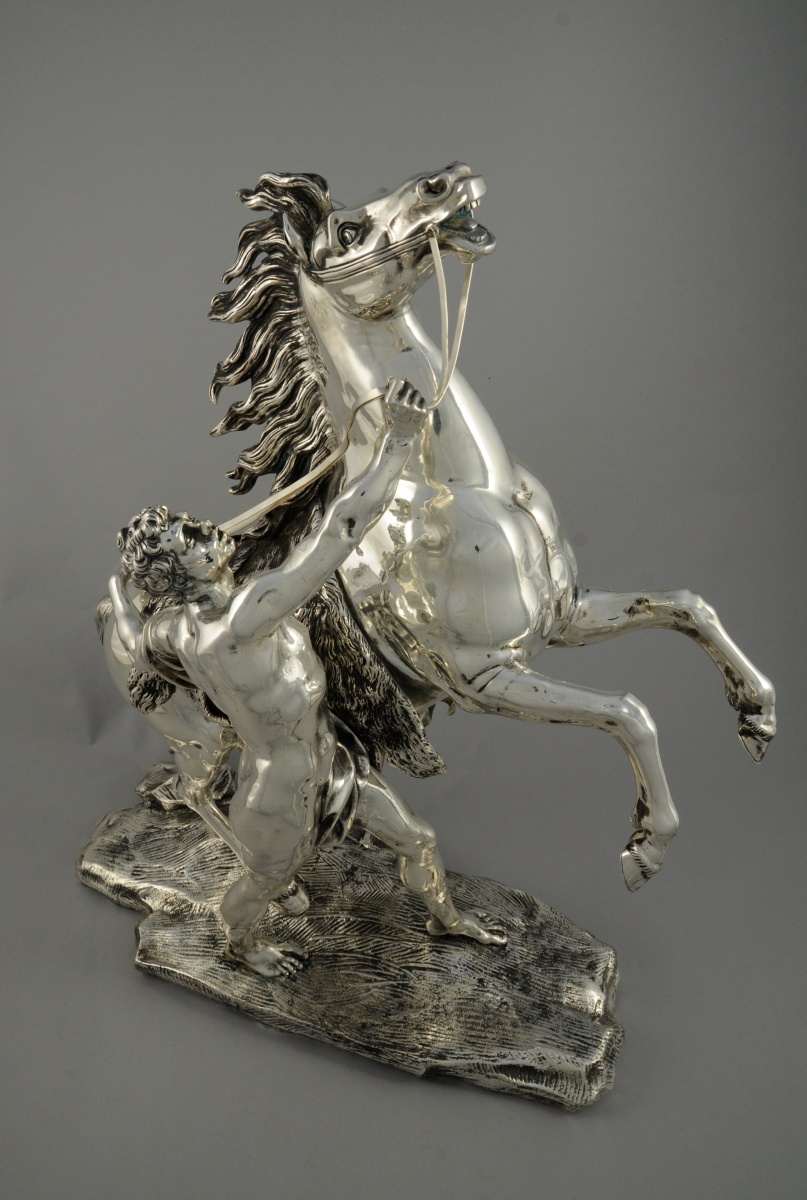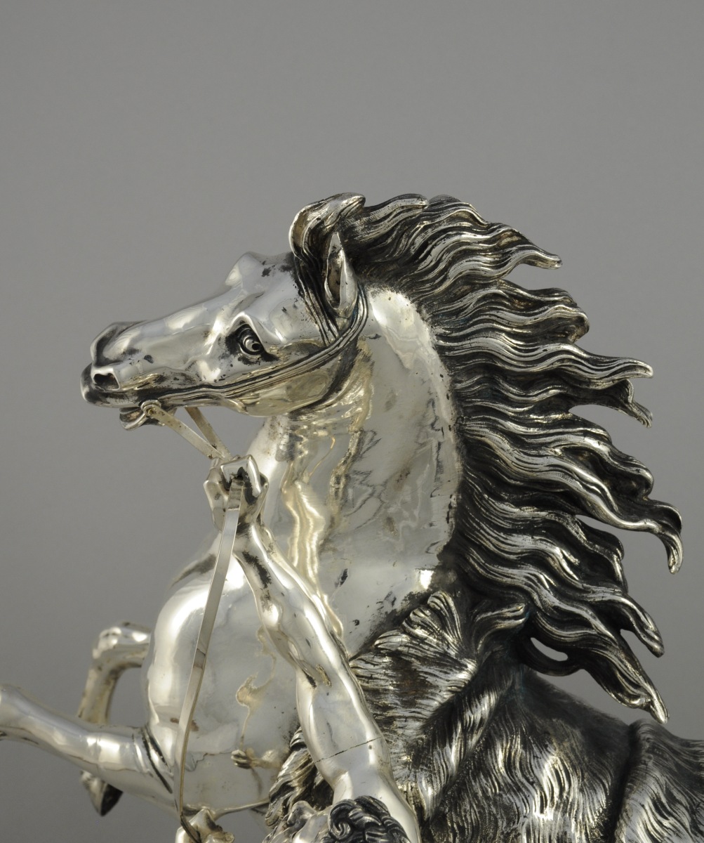 Les CHEVAUX DE MARLY d'après COUSTOU en bronze argenté. Deux sujets en pendant.