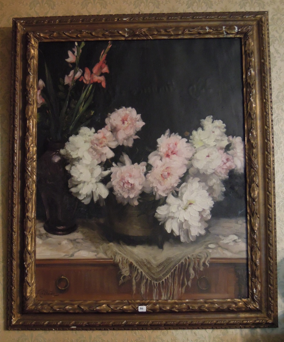 François Charles BAUDE (1880-1953). BOUQUET DE PIVOINES. Toile signée (ancien n°51).
