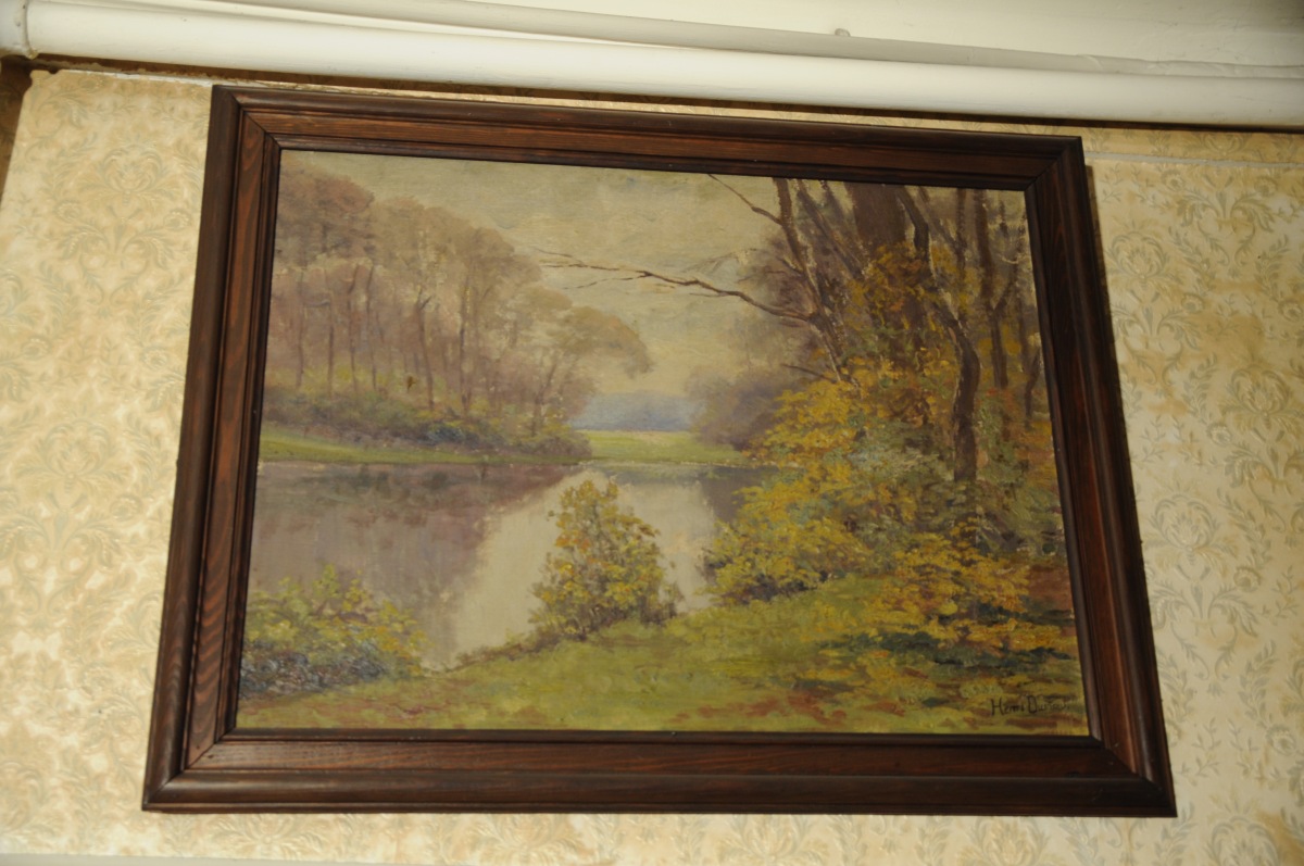 Henri DUMONT (1859-1921). ÉTANG À L'AUTOMNE. Toile signée. 48 x 64 cm (ancien n°65).