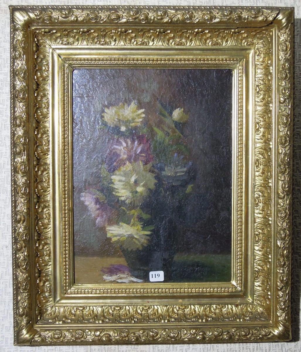 CHRYSANTHÈMES. Toile. 33 x 24 cm (ancien n°86.