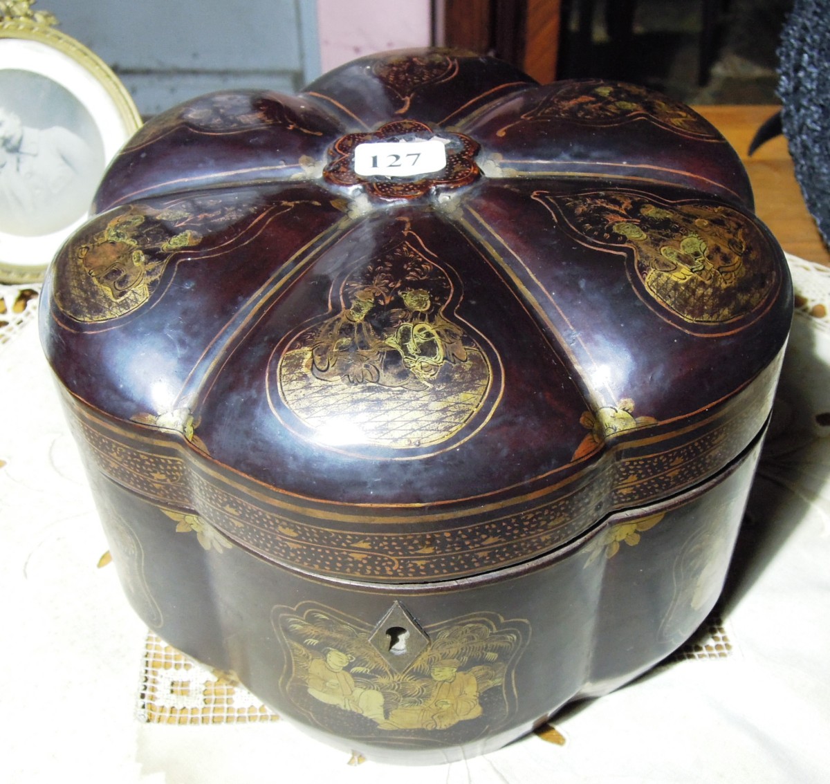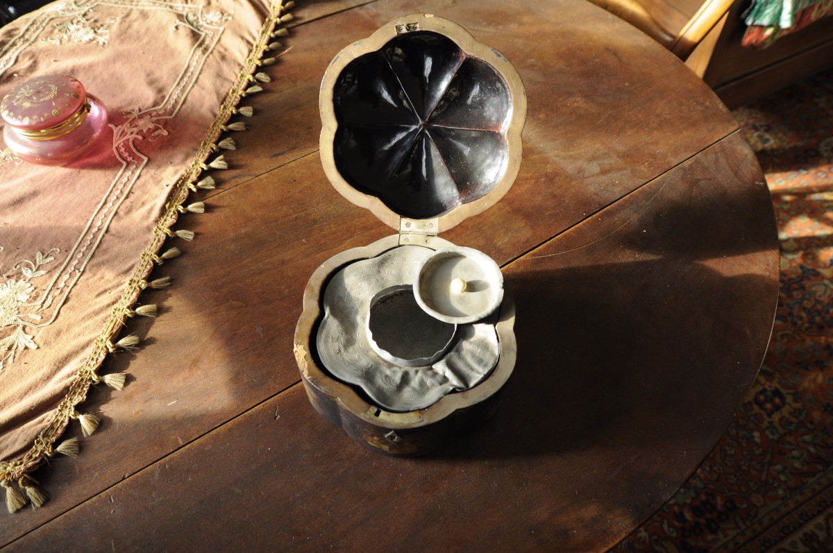 BOITE À THE en laque, intérieur en étain avec sa clé (ancien n°91).