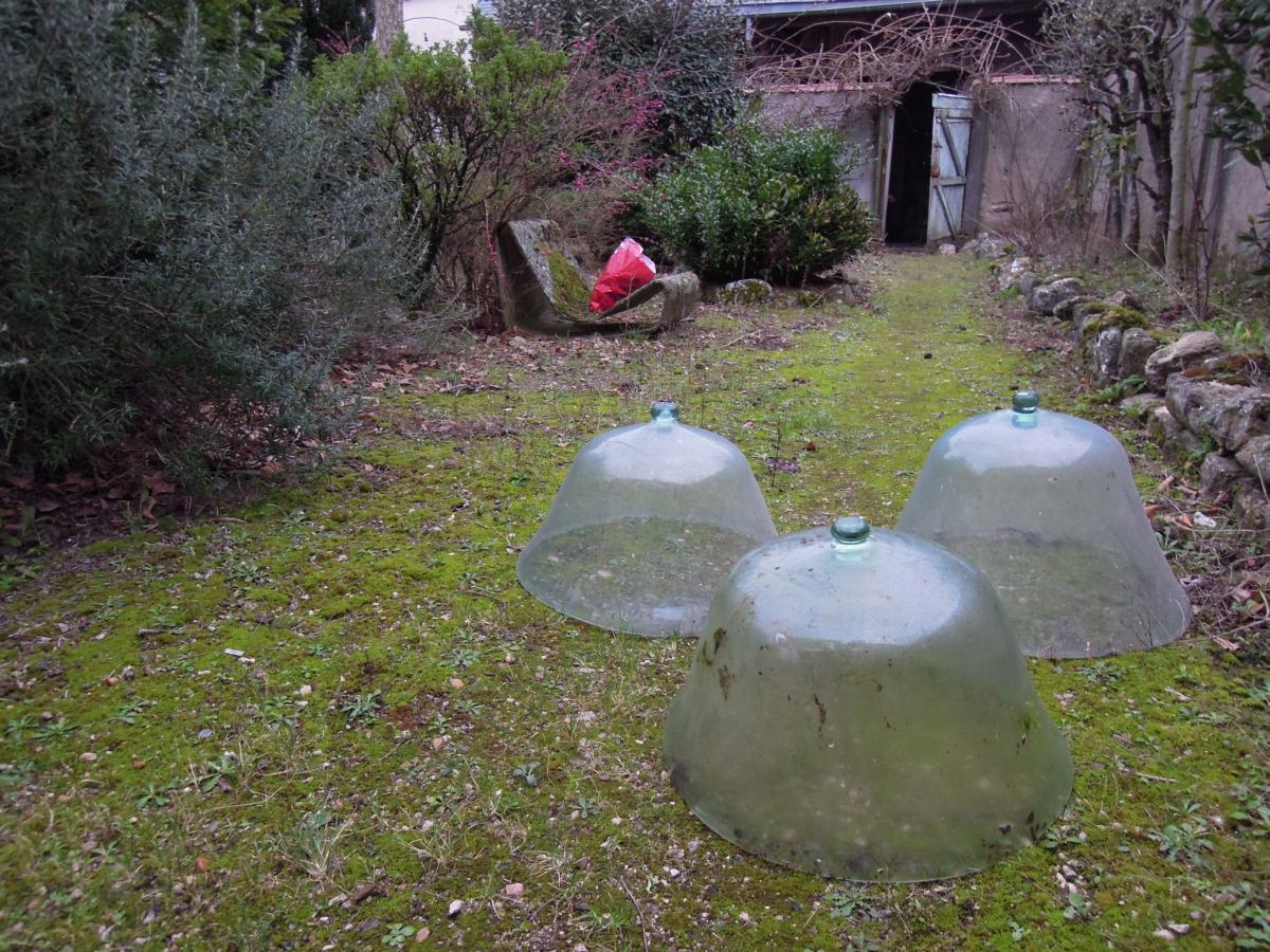 OUTILS ET USTENSILS dans le jardin, dont cloches, et dans...