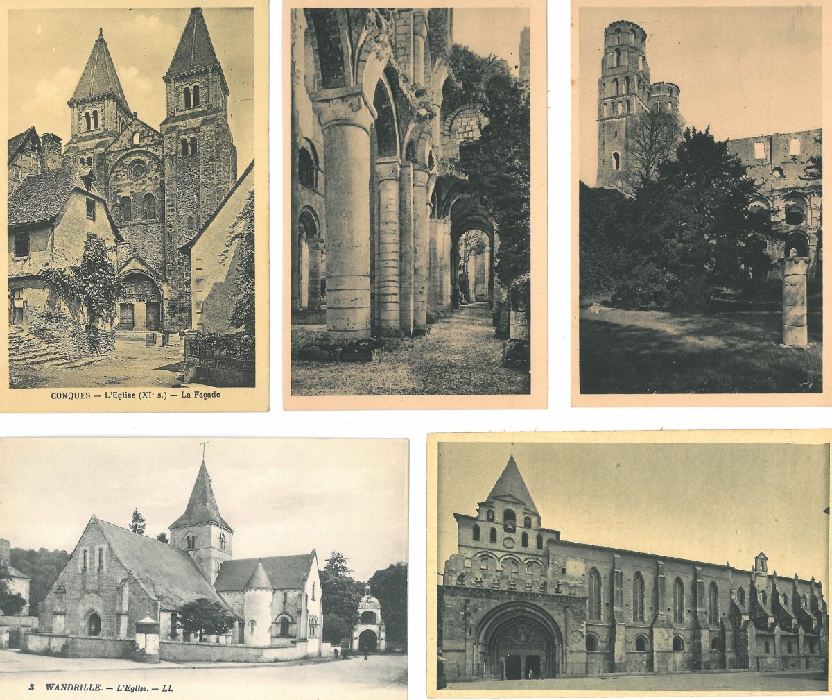 FRANCE. Environ 290 CARTES POSTALES sur le thème des monuments religieux dont: trois carnets de cartes à détacher de l'abbaye de Solesmes, le Mont Saint-Michel, la Cathédrale de Rouen, églises de Bretagne. Début XXème.