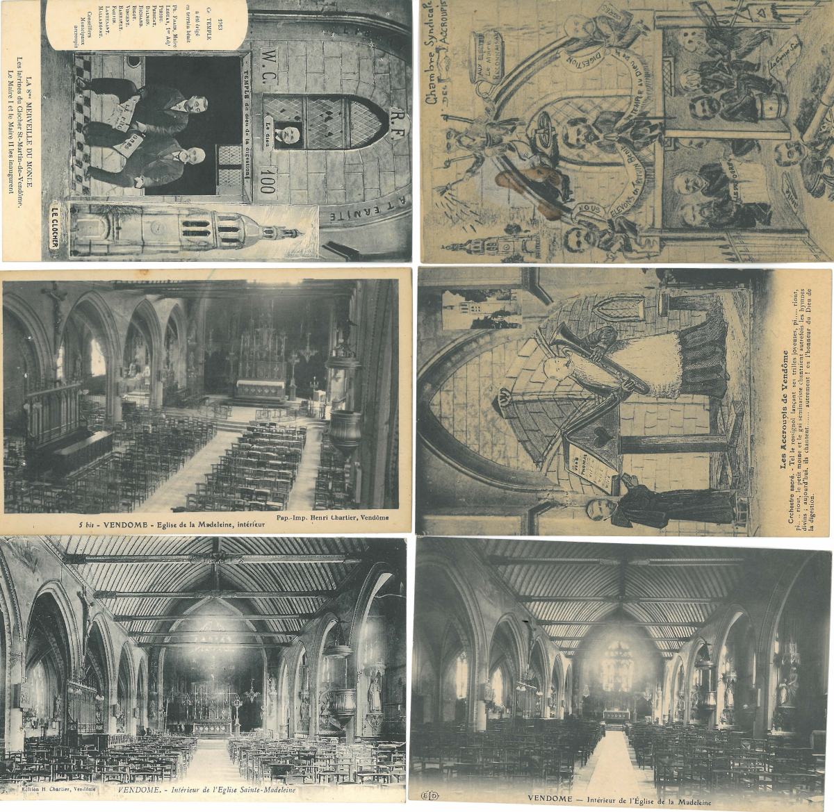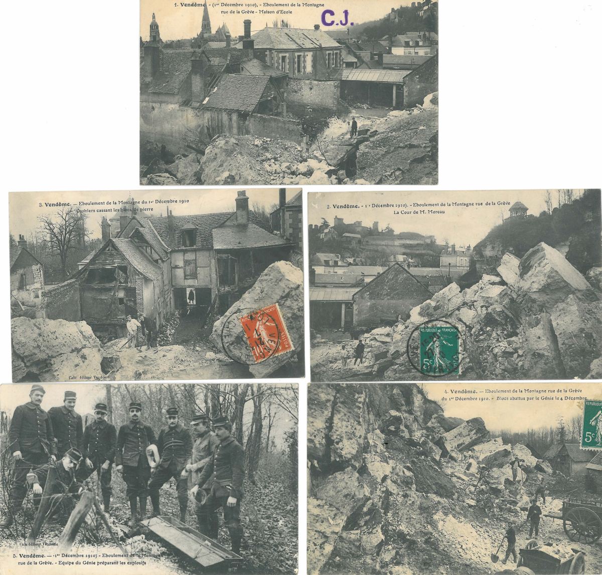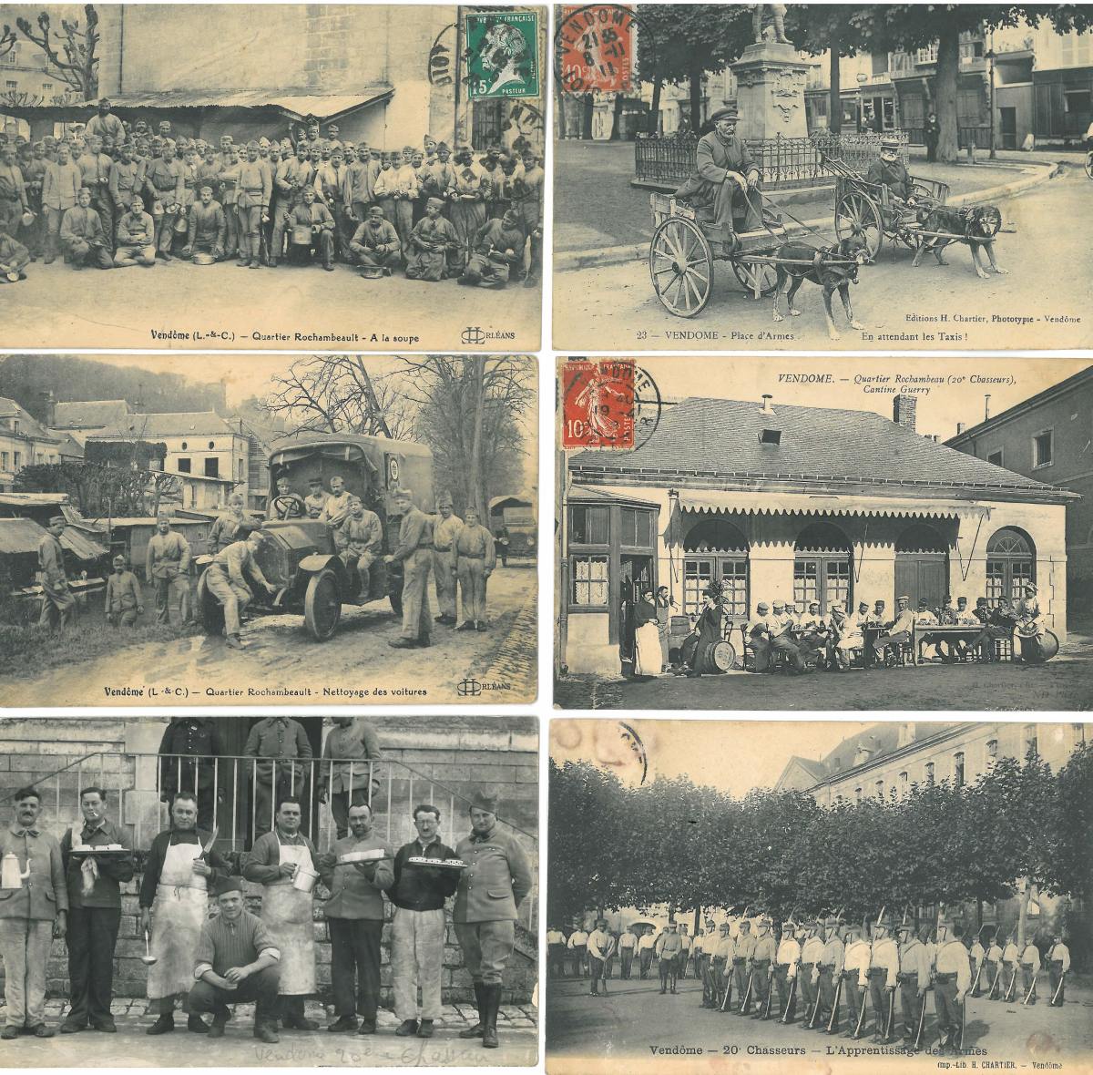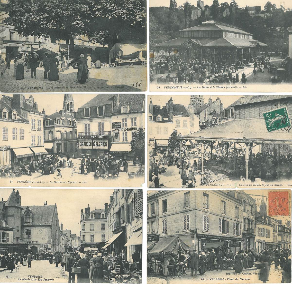 Exceptionnelle et rare collection de 965 CARTES POSTALES réunie en 4 albums sur VENDÔME. Belles cartes anciennes : attelages de chiens en attendant les taxis, marché , commerces, usine, coiffes, fêtes des fleurs, rues animées, chemins de fer, innondations, courses, aviation, catastrophe éboulement, éducation pensionnats, société de bigophones, armée 20ème chasseur, politique élections, religion, sorciers...